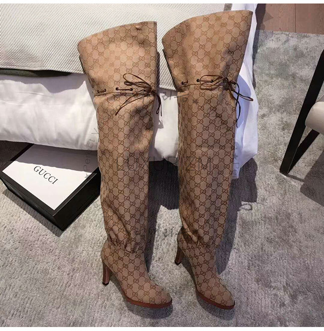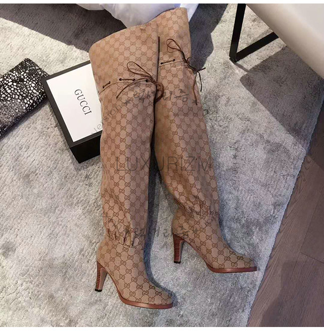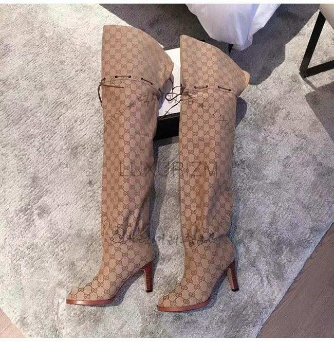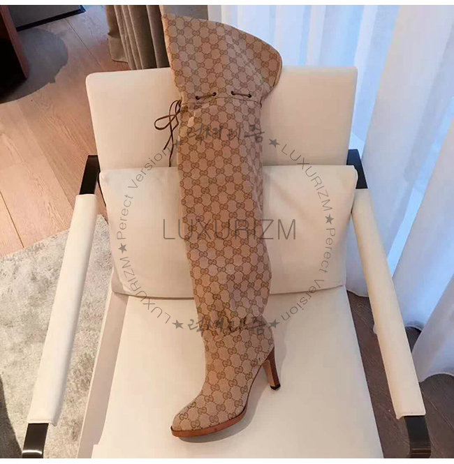 GUCCI-523513 9770 구찌 베이지 GG 캔버스 over-the-knee 부츠