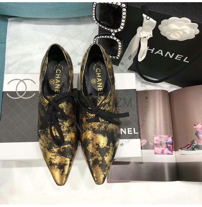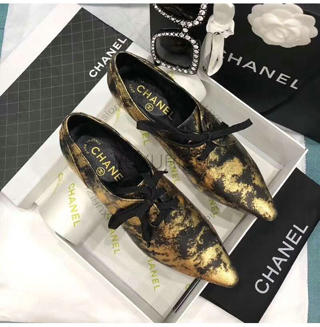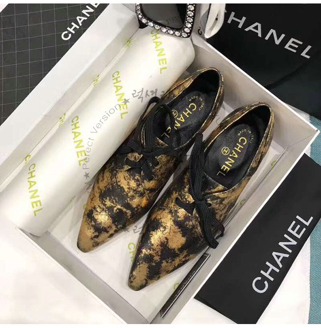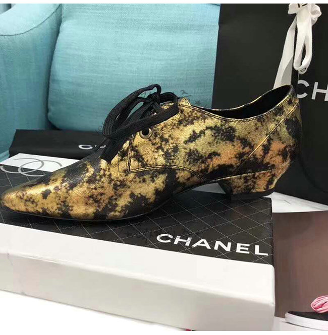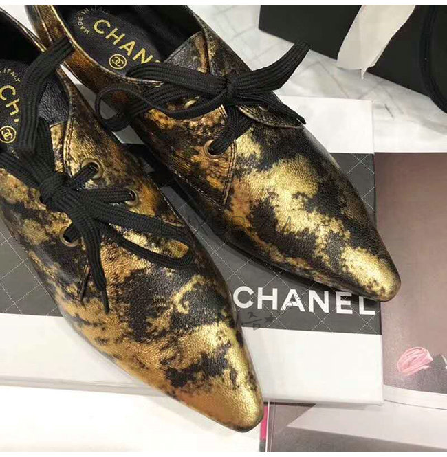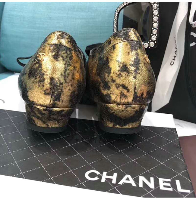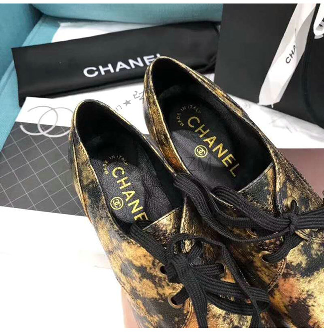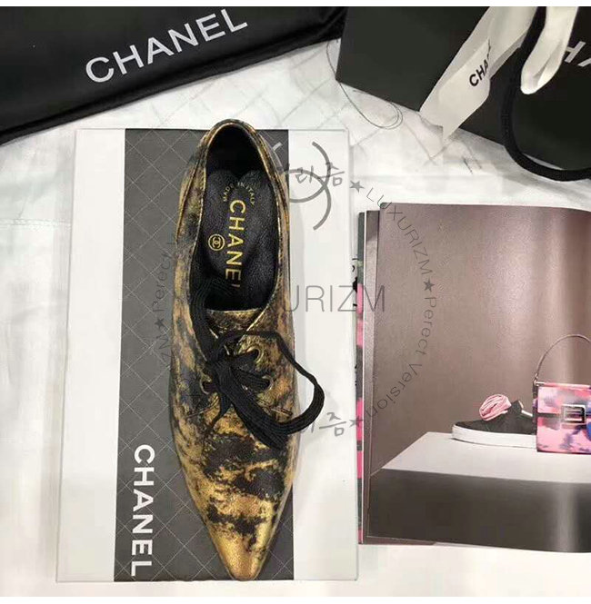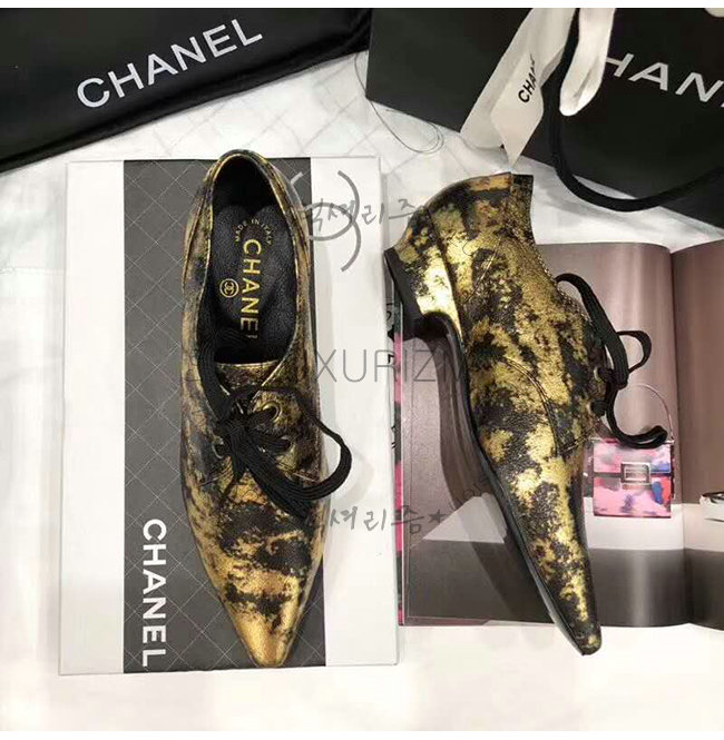 CHANEL-G34275 샤넬 골드 라미네이티드 스웨이드 고트스킨 레이스업