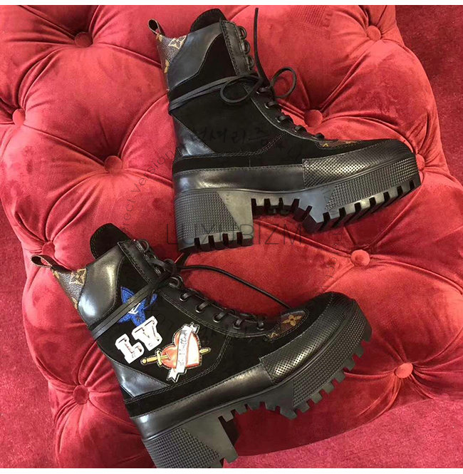 [스페셜오더]LOUIS VUITTON-1A4FQ1 루이비통 스웨이드 송아지 가죽 모노그램 디테일 로리엇 플랫폼 데저트 부츠 가격 : 320,000원