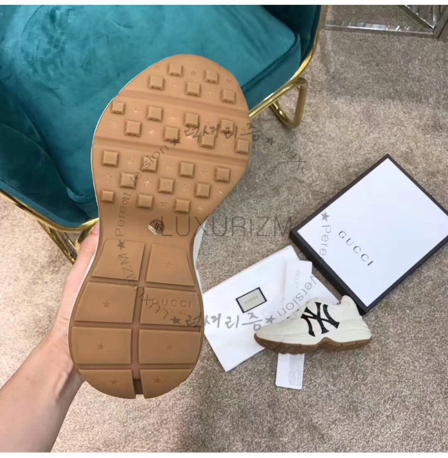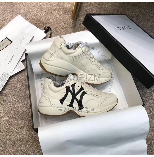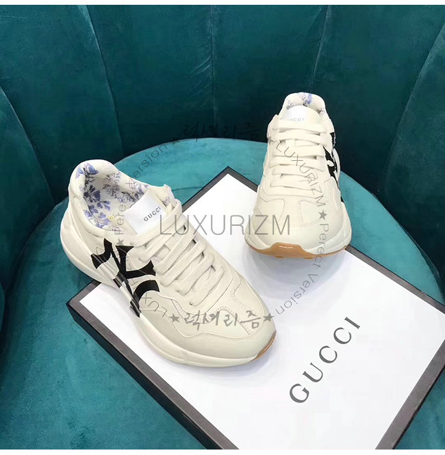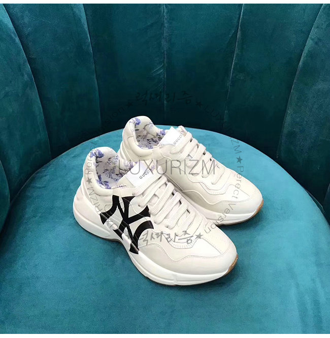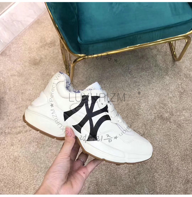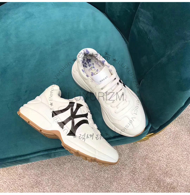 GUCCI-548638 9022 구찌 화이트 가죽 뉴욕 양키스 프린트가 롸이톤 스니커즈