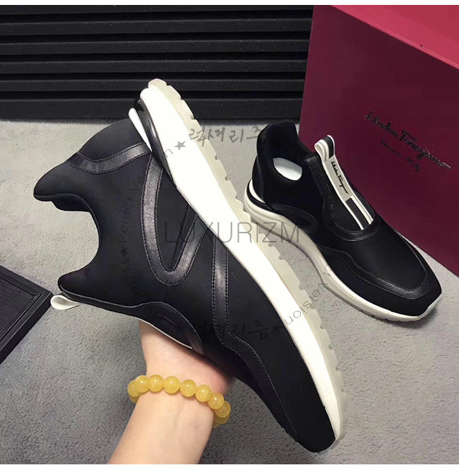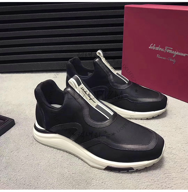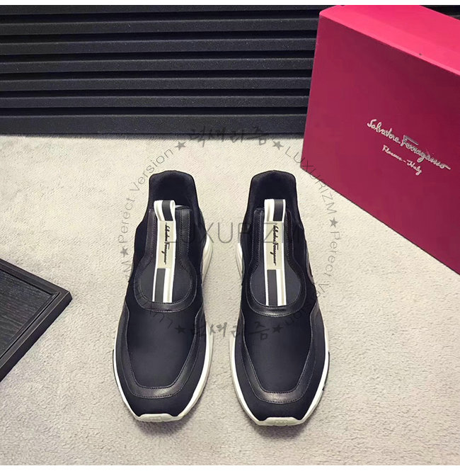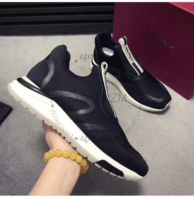 FERRAGAMO-02B308 페라가모 블랙 캔버스 슬립온 스니커즈