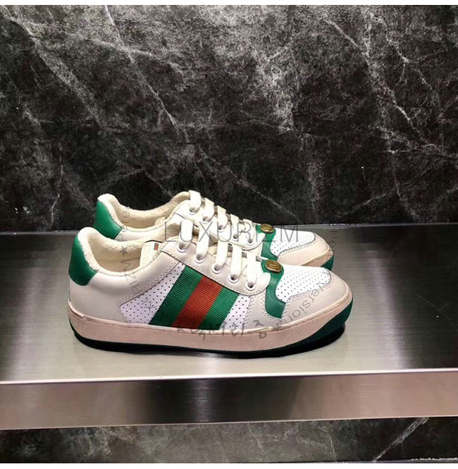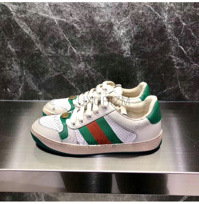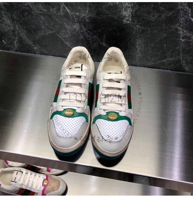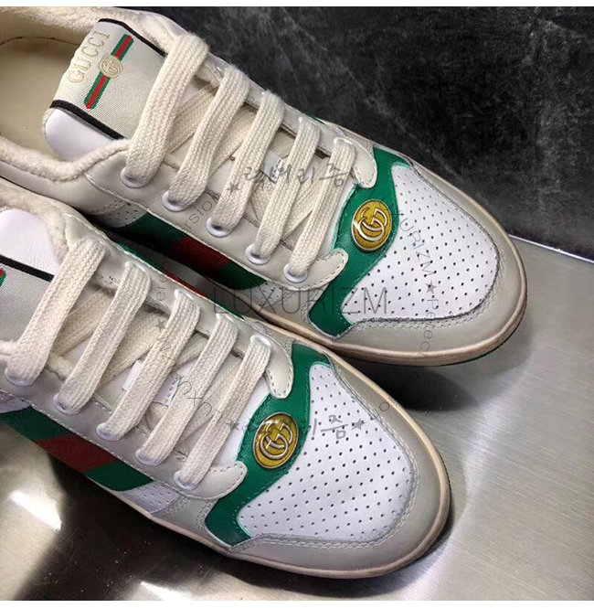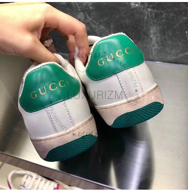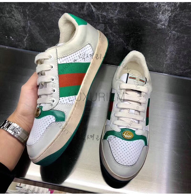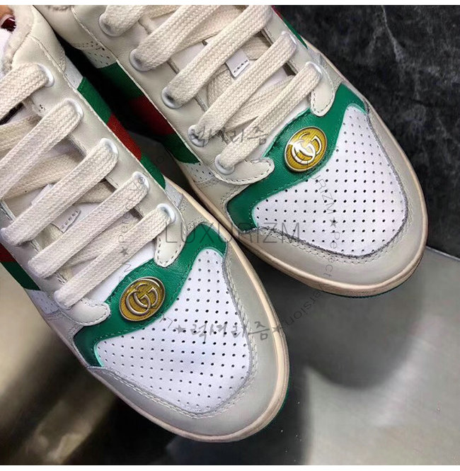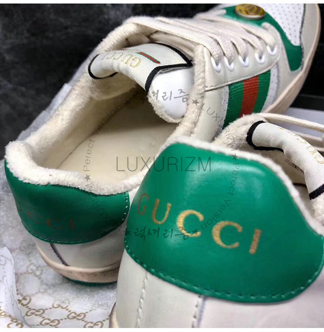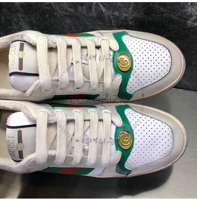 GUCCI-546163 9582 구찌 스크리너 화이트 천공 가죽 디스트로이드 효과 스니커즈