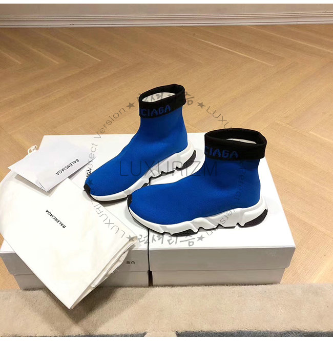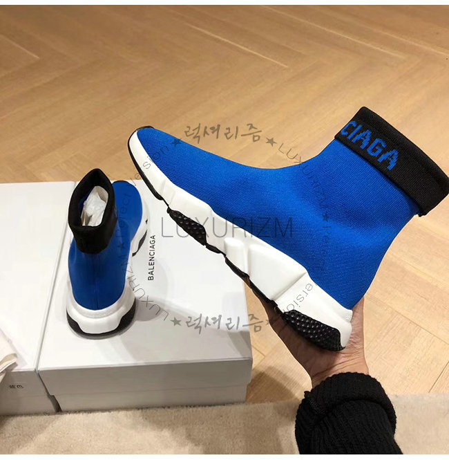 BALENCIAGA-525725 발렌시아가 블루 니트 로고 장식 스피드 트레이너(남여공용)
