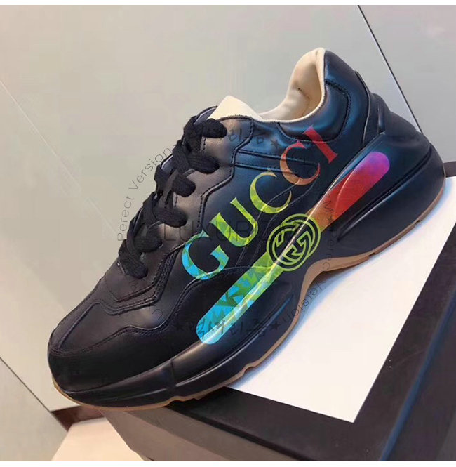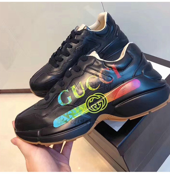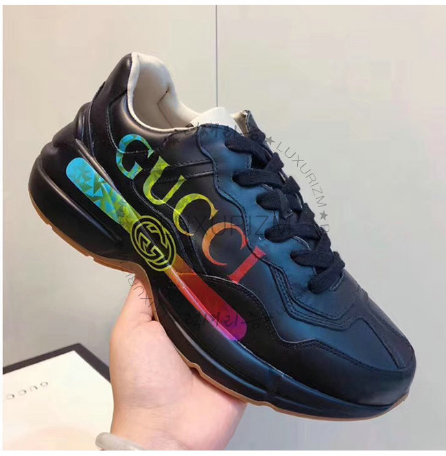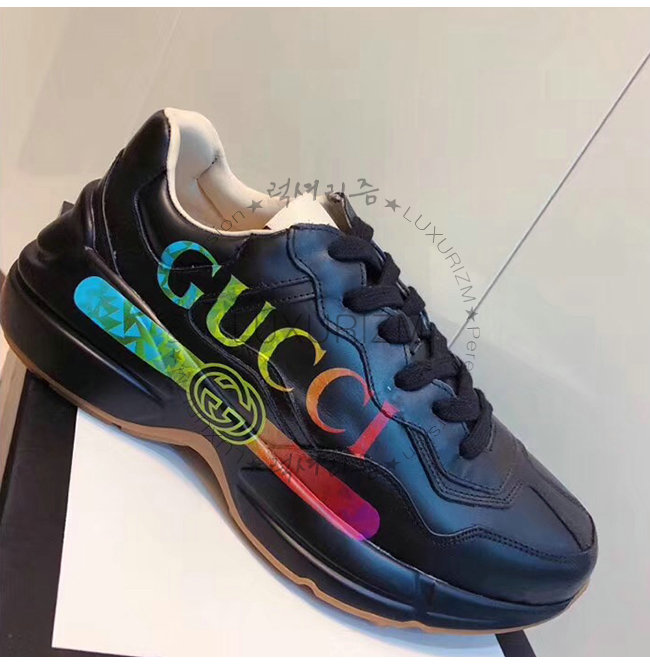 [스페셜오더]GUCCI-553608 1000 구찌 롸이톤 블랙 가죽 로고 프린트 스니커즈(남여공용)