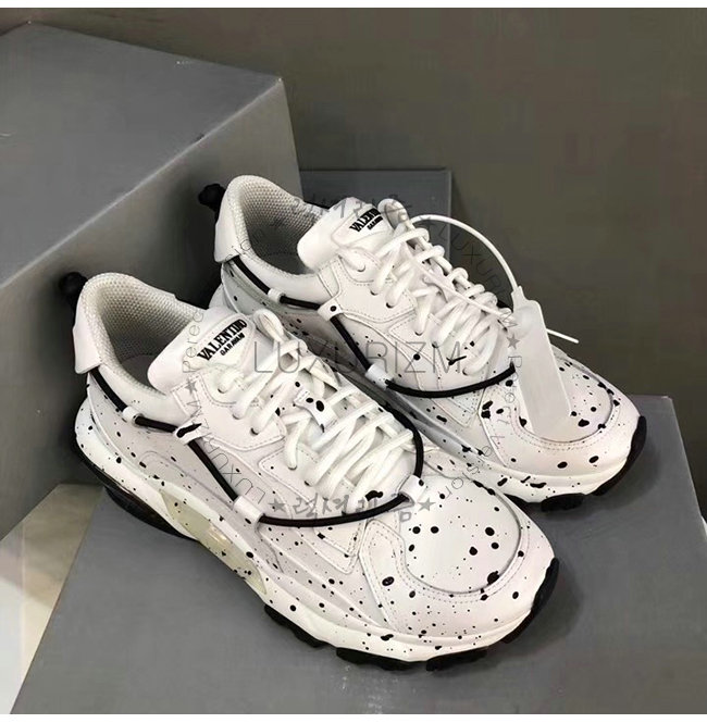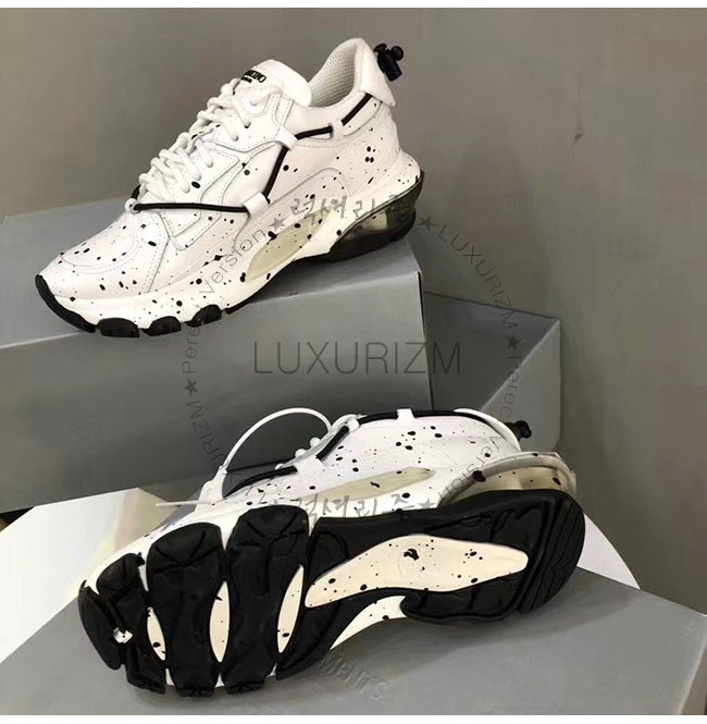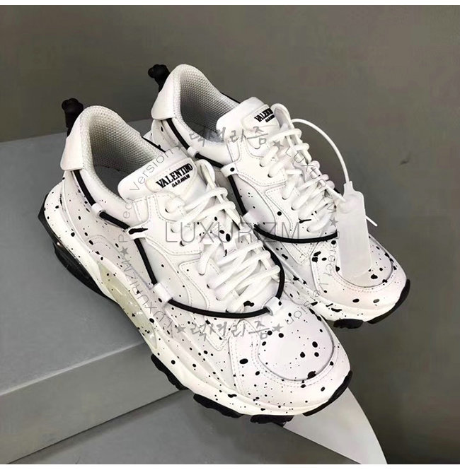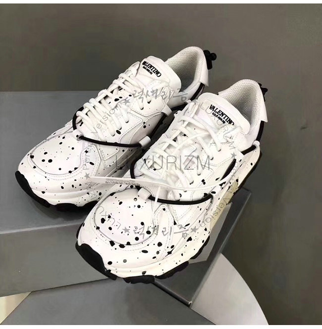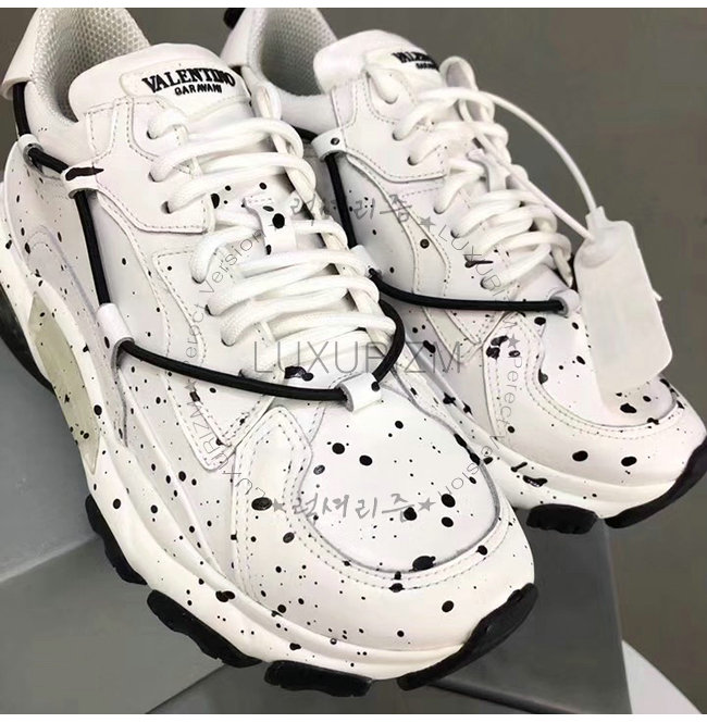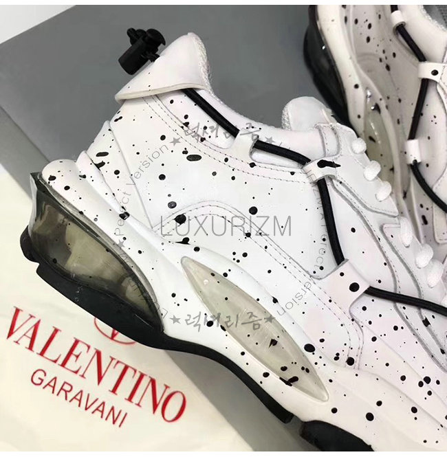 VALENTINO-QY0S0B20 발렌티노 화이트 송아지 가죽 핸드 스프레이 장식 바운스 로우탑 스니커즈(남여공용)