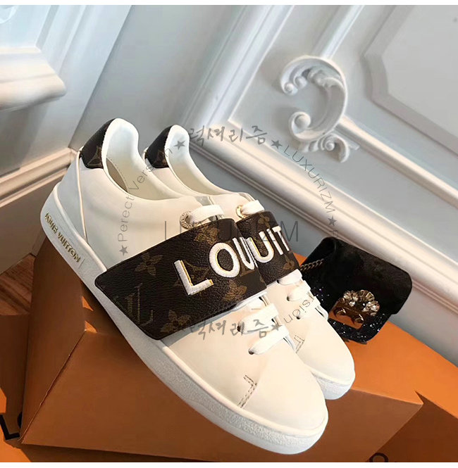 LOUIS VUITTON-1A4VSG 루이비통 화이트 송아지 가죽 화이트 벨크로 스트랩 프런트로우 스니커즈