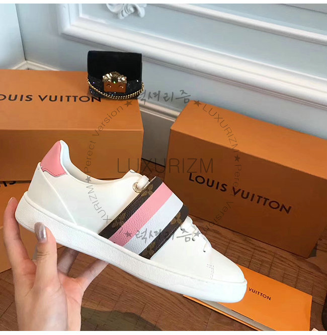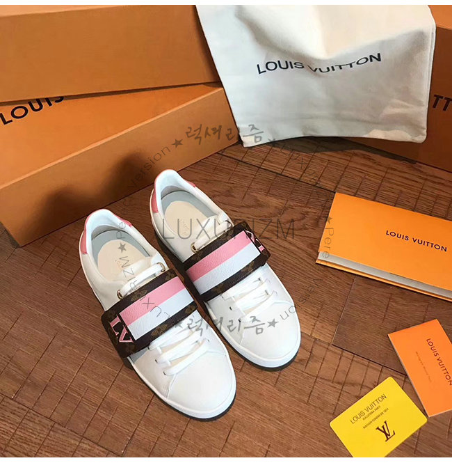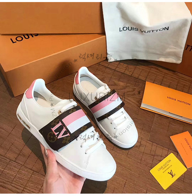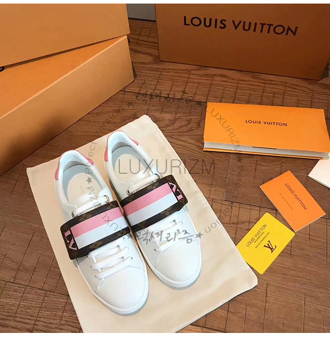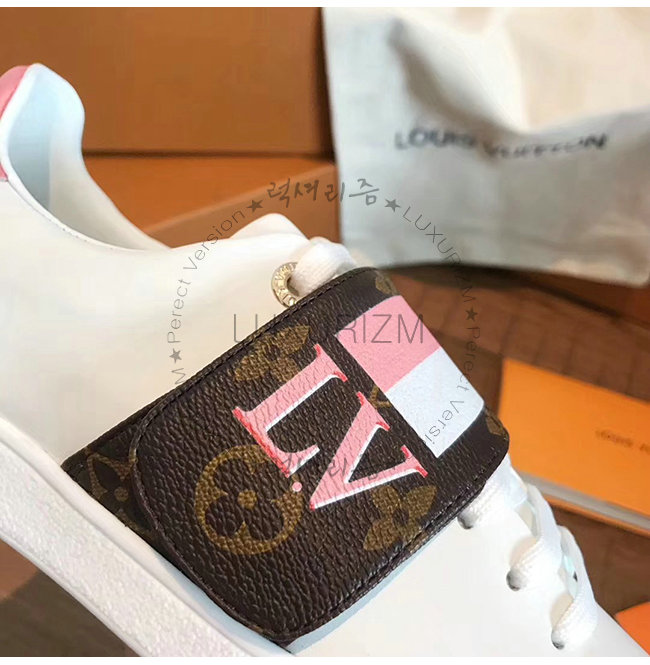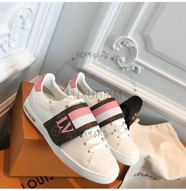 LOUIS VUITTON-1A4G2Z 루이비통 화이트 송아지 가죽 핑크 화이트 모노그램 벨크로 스트랩 프런트로우 스니커즈