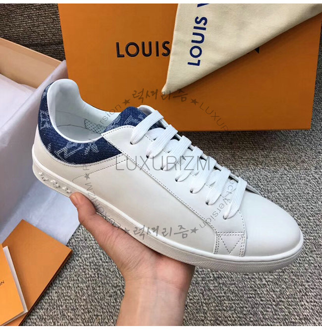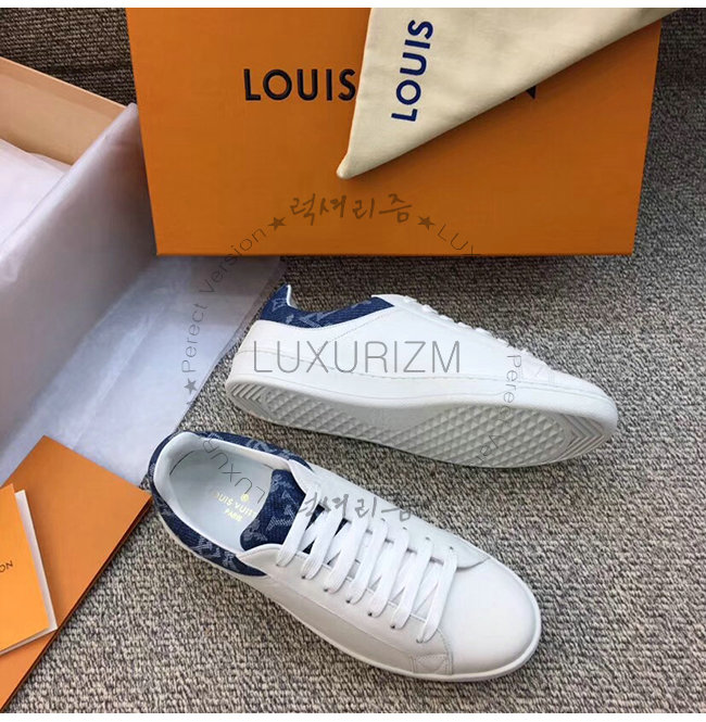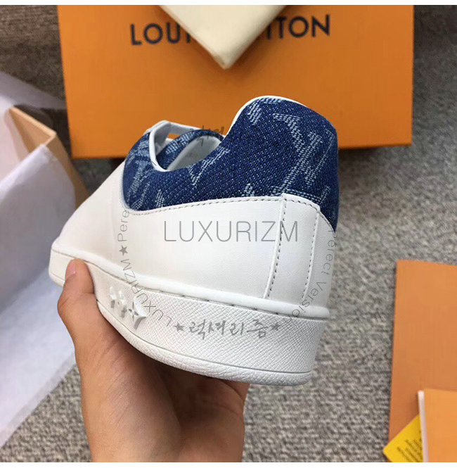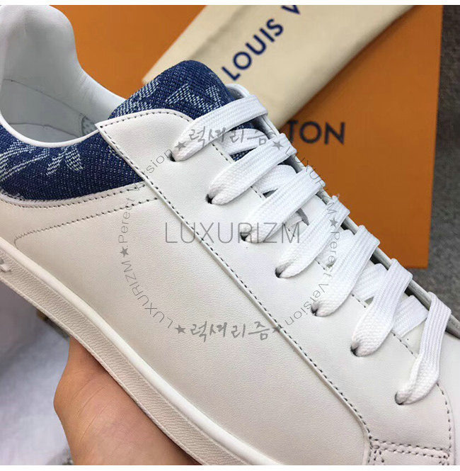 LOUIS VUITTON-1A45T7 루이비통 화이트 송아지 가죽 데님 모노그램 디테일 룩셈부르크 스니커즈
