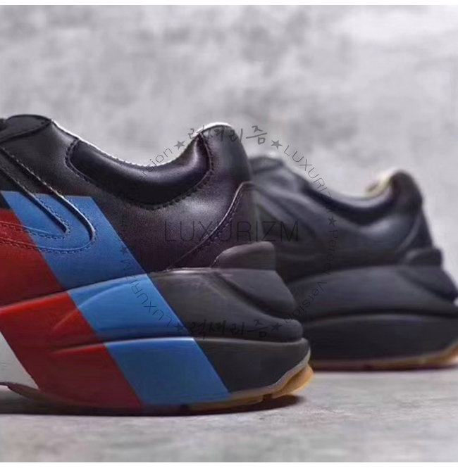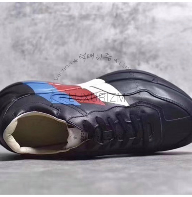 GUCCI-523535 1000 구찌 롸이톤 블랙 가죽 웹(Web) 프린트 스니커즈(남여공용)