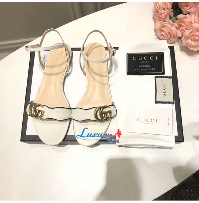 GUCCI-524631 9022 구찌 GG 마몽 화이트 가죽 샌들