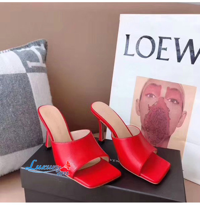 BOTTEGA VENETA-578319 보테가 베네타 레드 카프스킨 스트레치 샌들