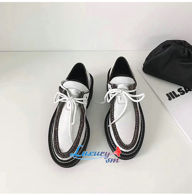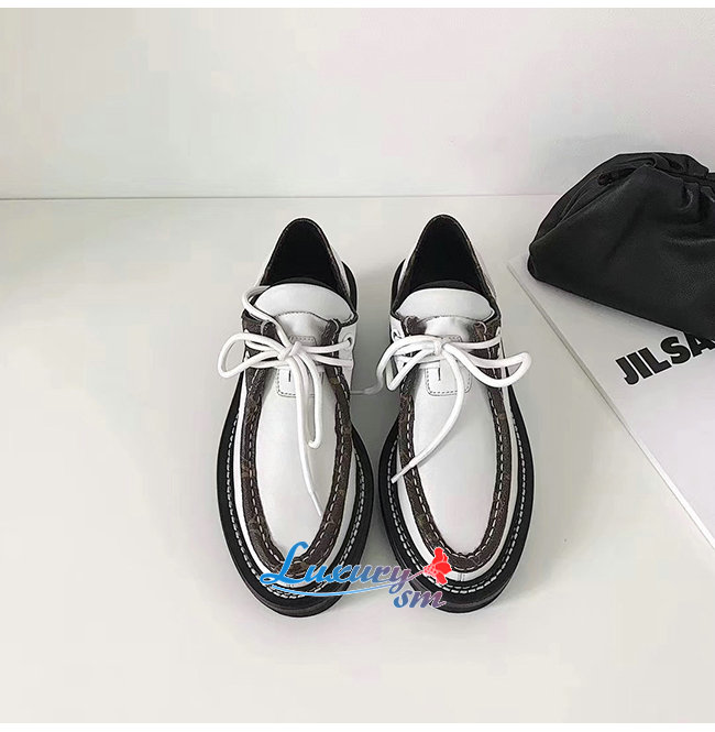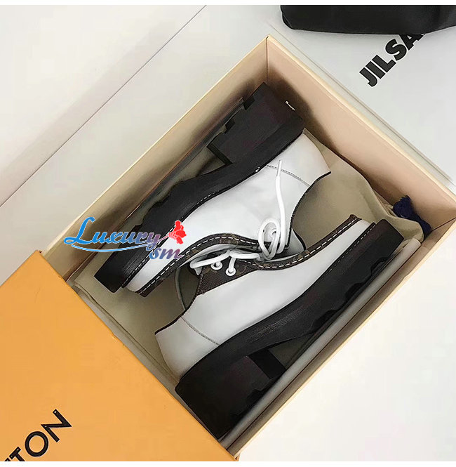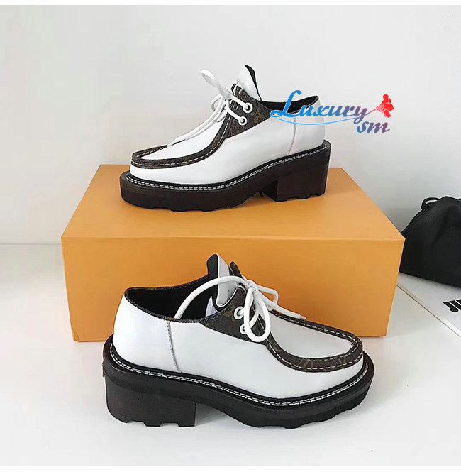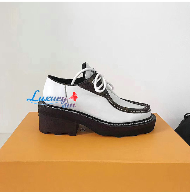 LOUIS VUITTON-1A5SNT 루이비통 화이트 송아지 가죽 모노그램 디테일 LV 보부르 플랫폼 더비