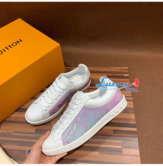 [스페셜오더]LOUIS VUITTON-1A5HB6 루이비통 화이트 송아지 가죽 핑크 모노그램 디테일 룩셈부르크 스니커즈
