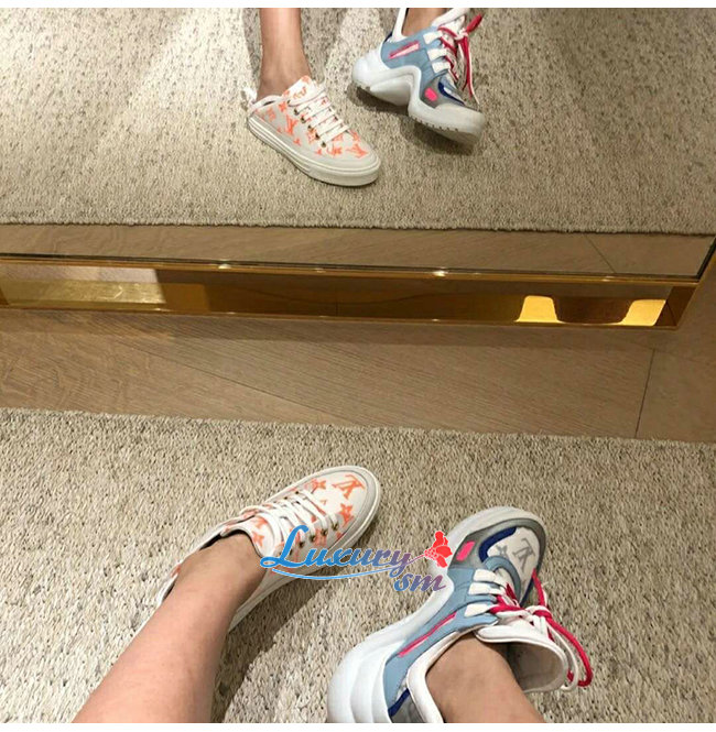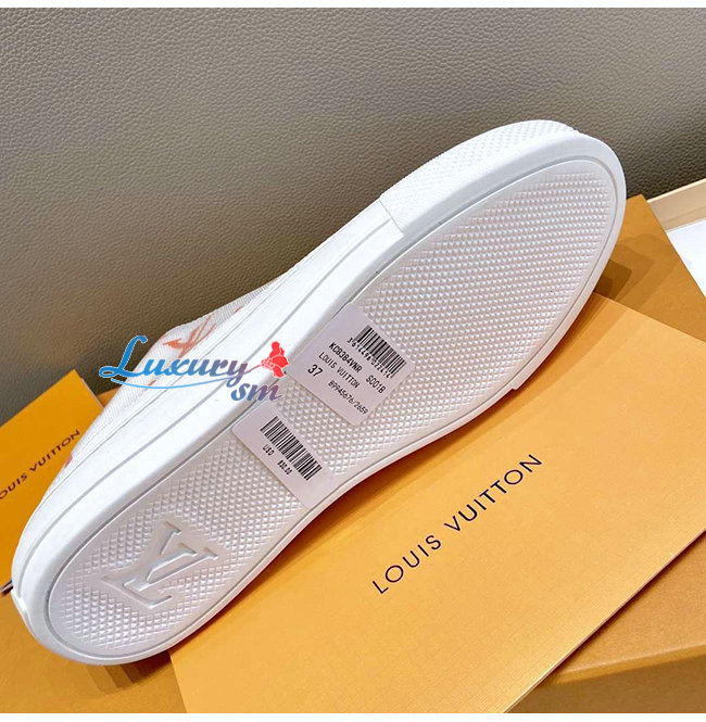 LOUIS VUITTON-1A65YB 루이비통 화이트/로즈 팝 모노그램 프린트 텍스타일 스텔라 오픈 백 스니커즈 가격 : 240,000원