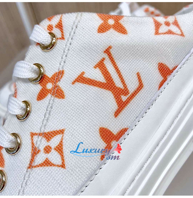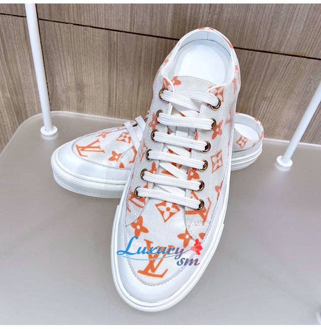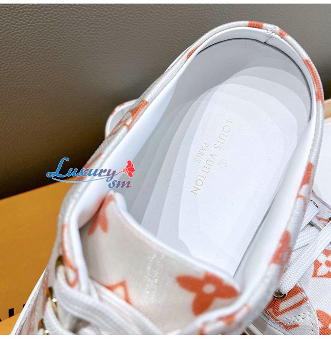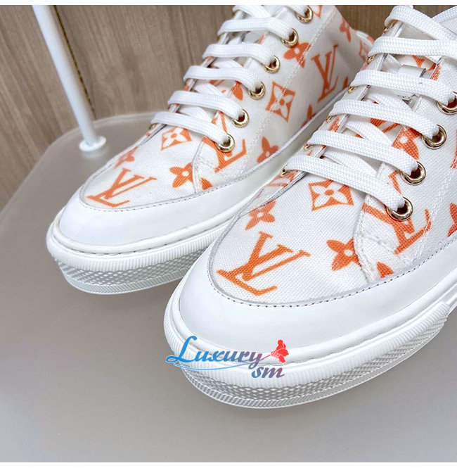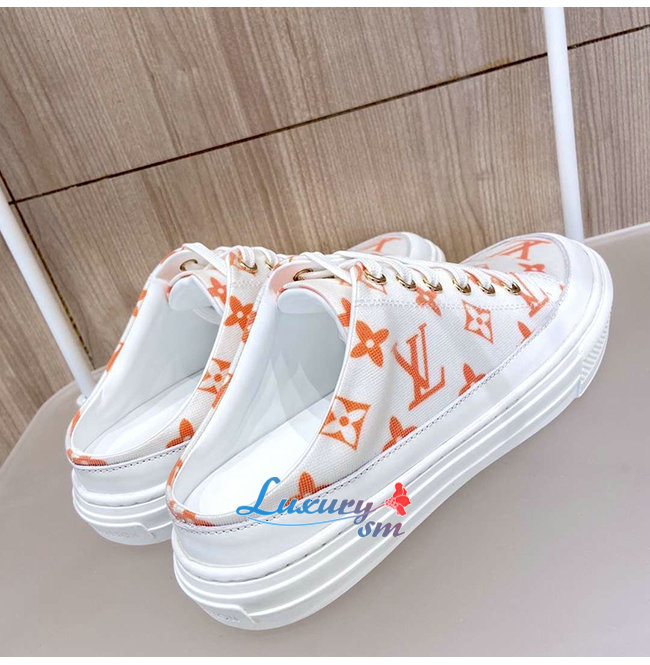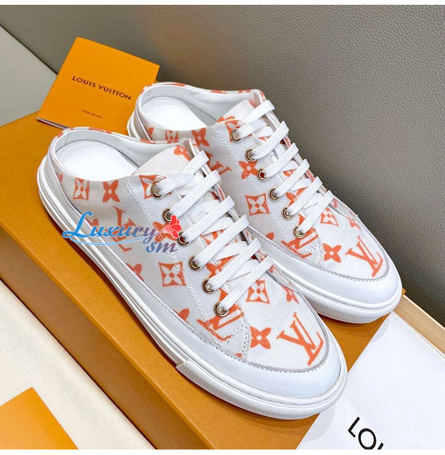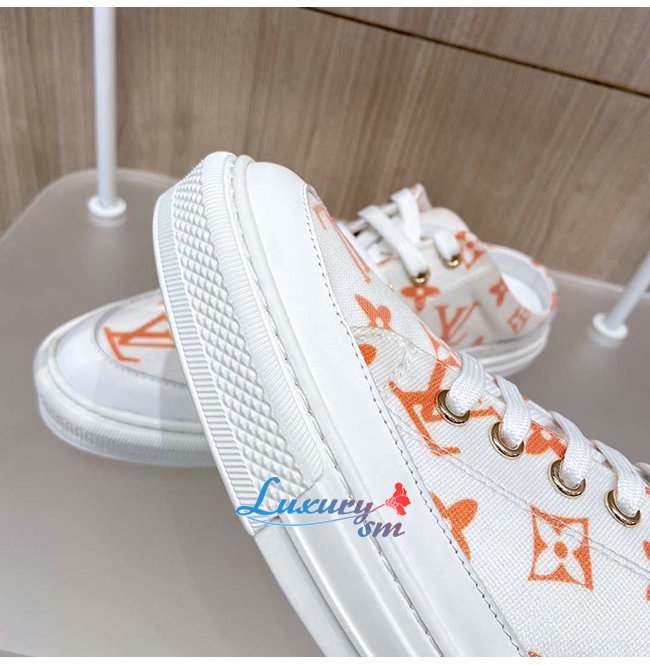 LOUIS VUITTON-1A65Z3 루이비통 화이트/오렌지 모노그램 프린트 텍스타일 스텔라 오픈 백 스니커즈
