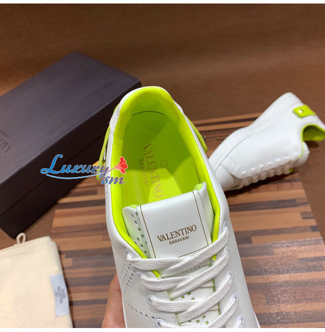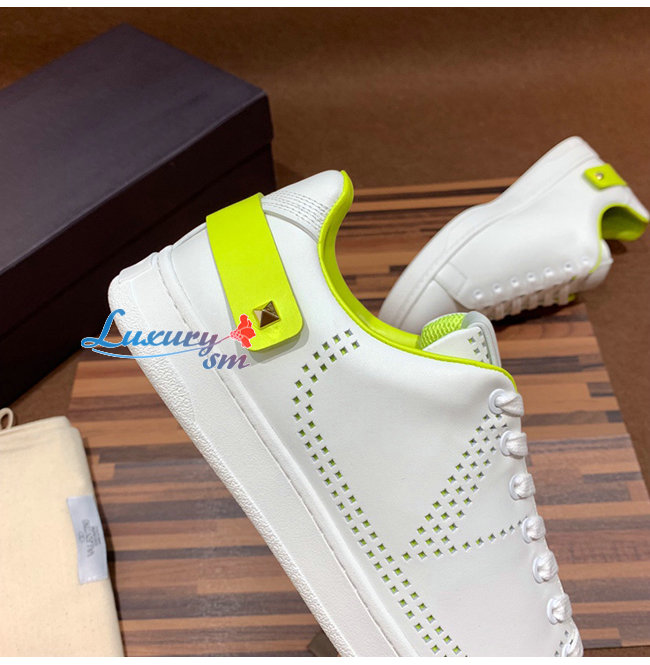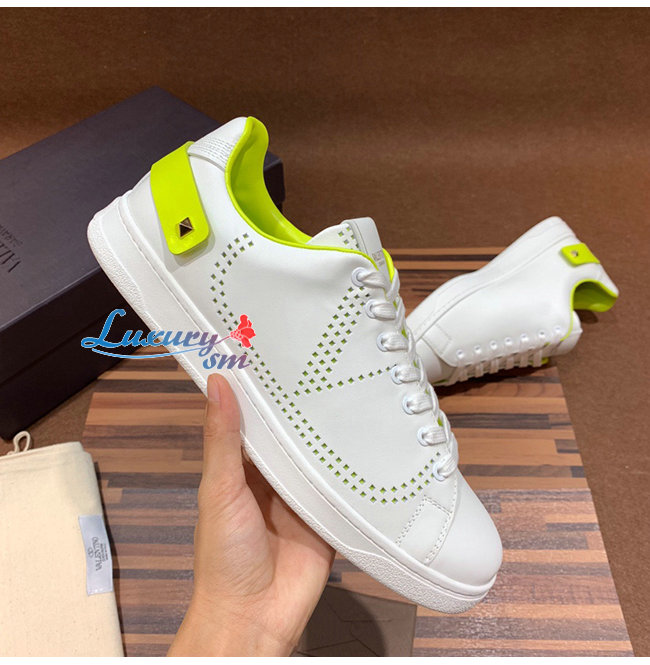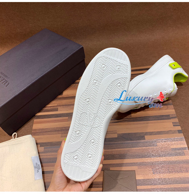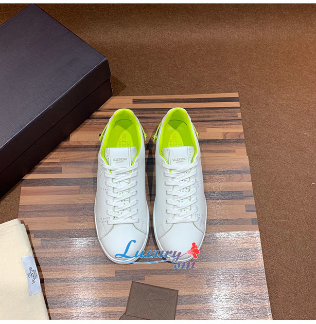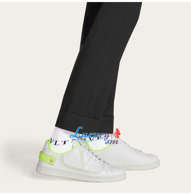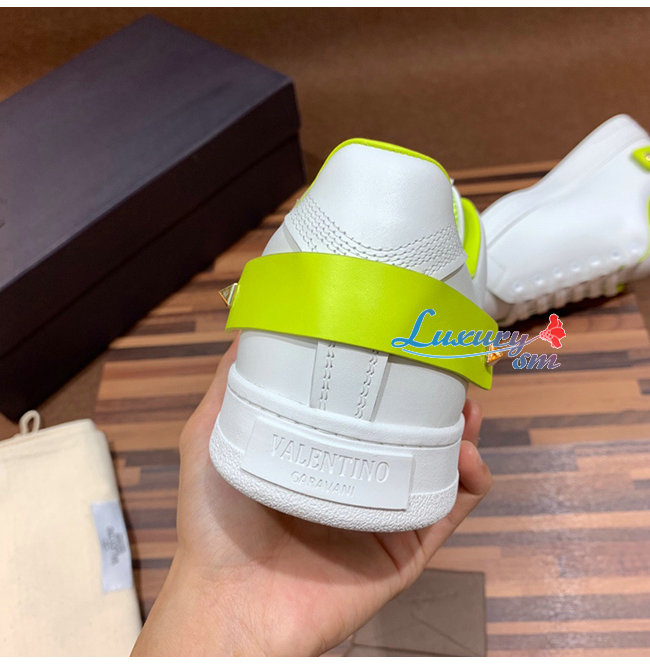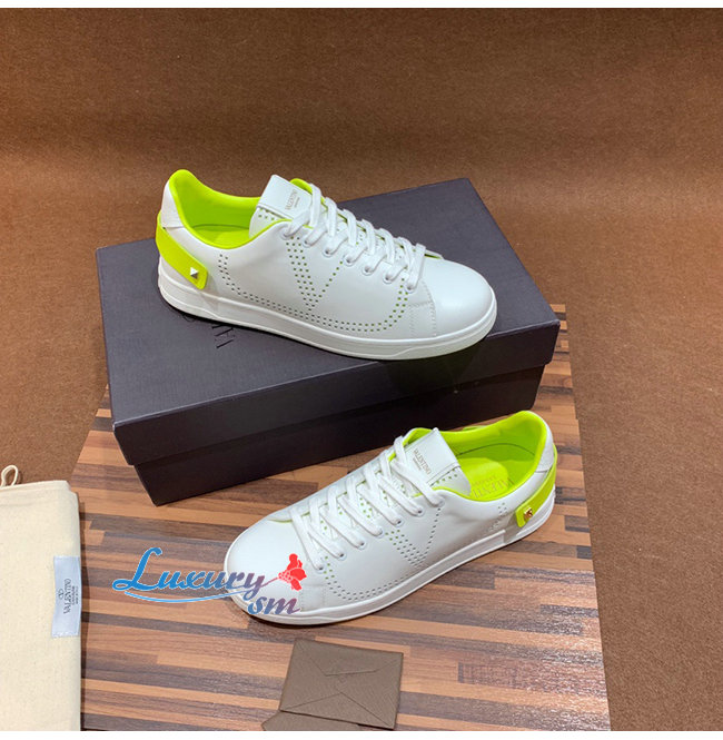 VALENTINO-TY2S0C0 발렌티노 화이트/라임 송아지 가죽 VLOGO 디테일 BACKNET 스니커즈 남여공용