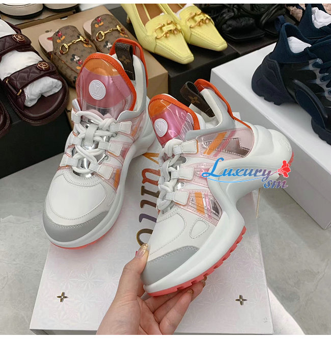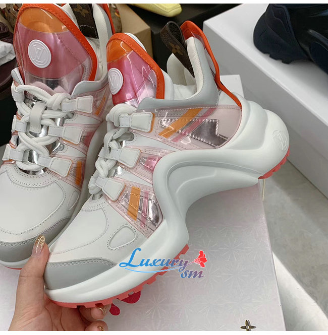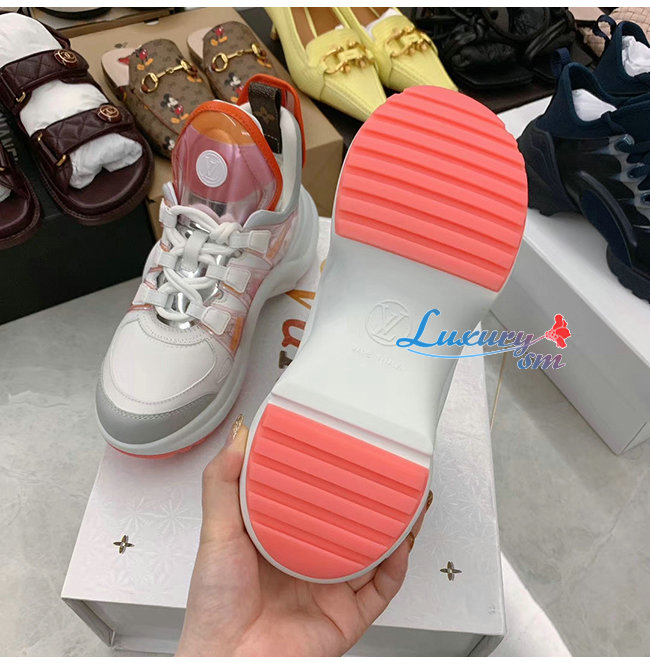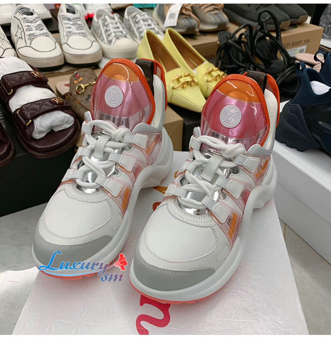 LOUIS VUITTON-1A65RA 루이비통 핑크/오랑주 소가죽 테크니컬 패브릭 LV 아치라이트 스니커즈