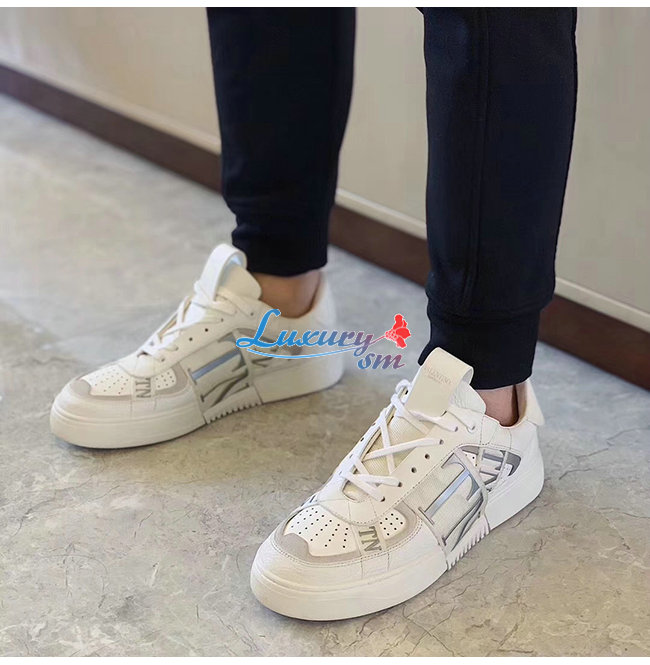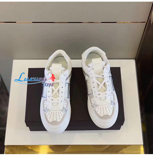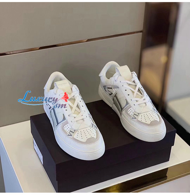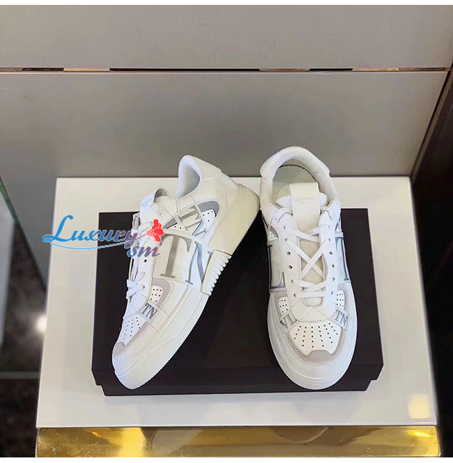 VALENTINO-TY2S0C58 발렌티노 화이트 송아지 가죽 & 패브릭 밴드 VL7N 스니커즈 남여공용