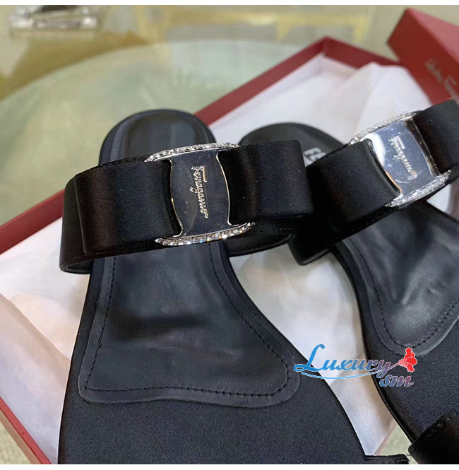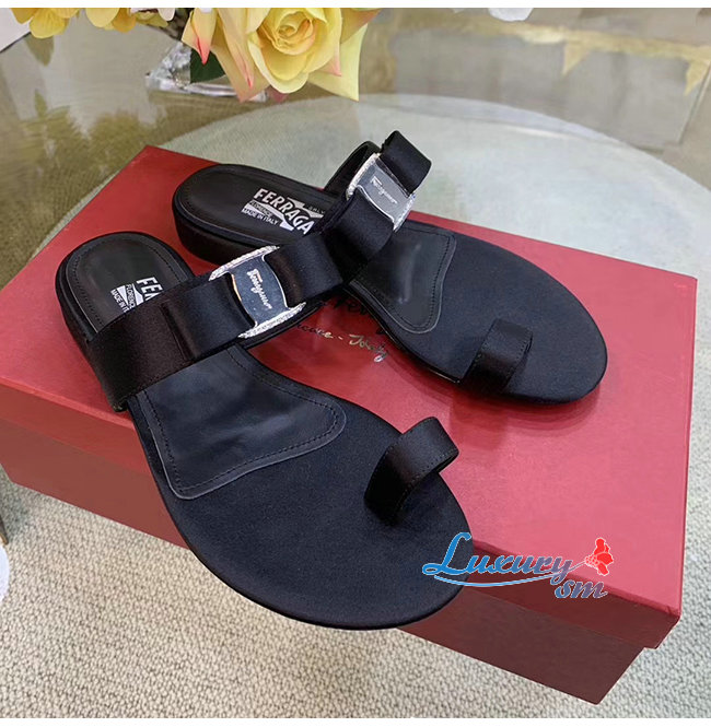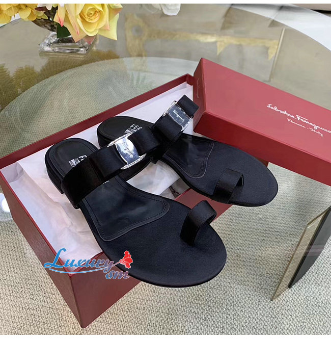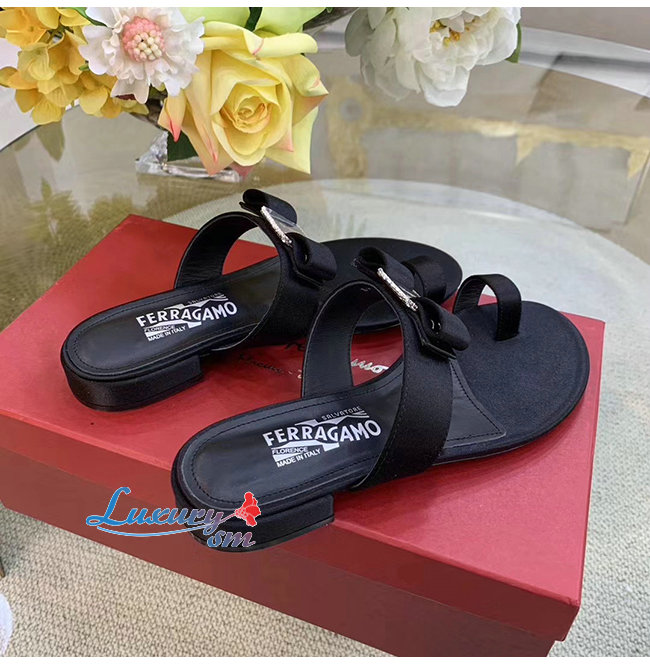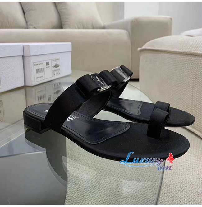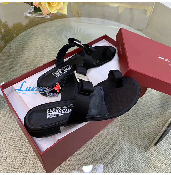 Ferragamo-01Q811 페라가모 블랙 바라 보우 플랫 샌들