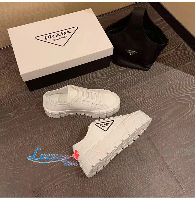 PRADA-1E260M 프라다 화이트 나일론 개버딘 스니커즈