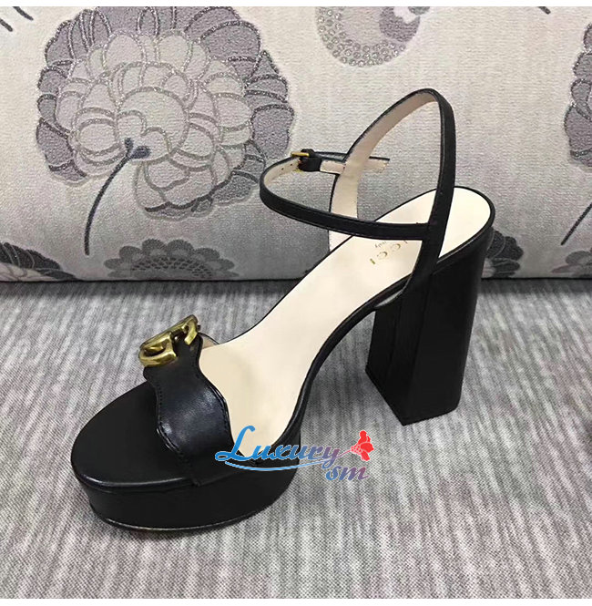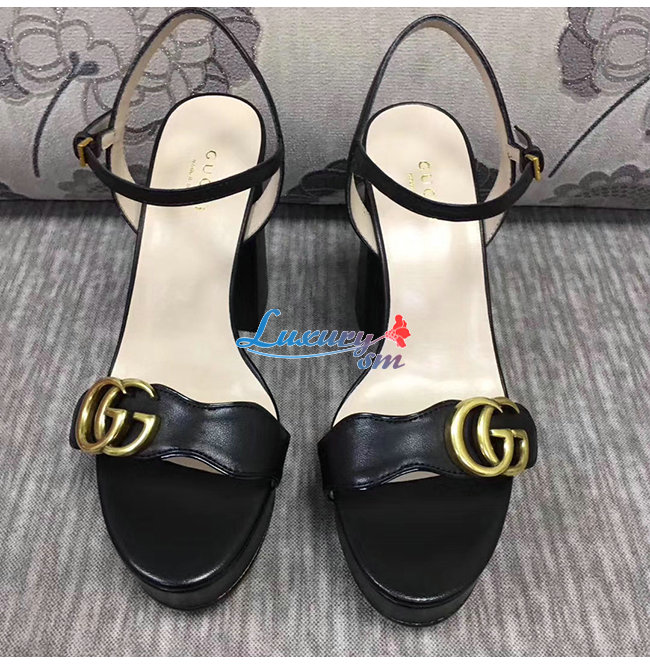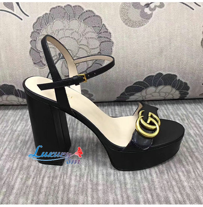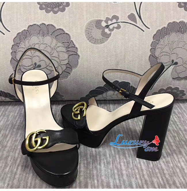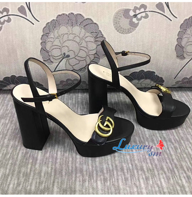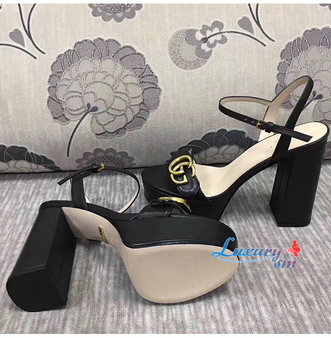 GUCCI-573022 1000 구찌 블랙 가죽 GG 마몽 플랫폼 샌들