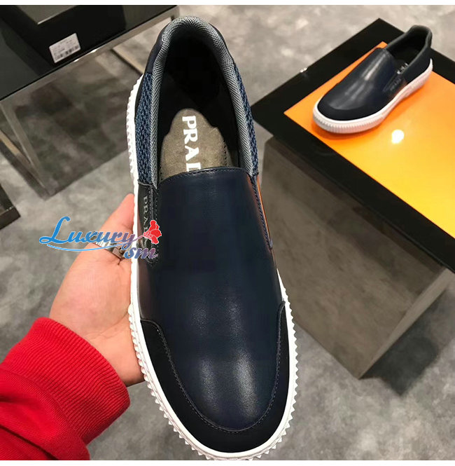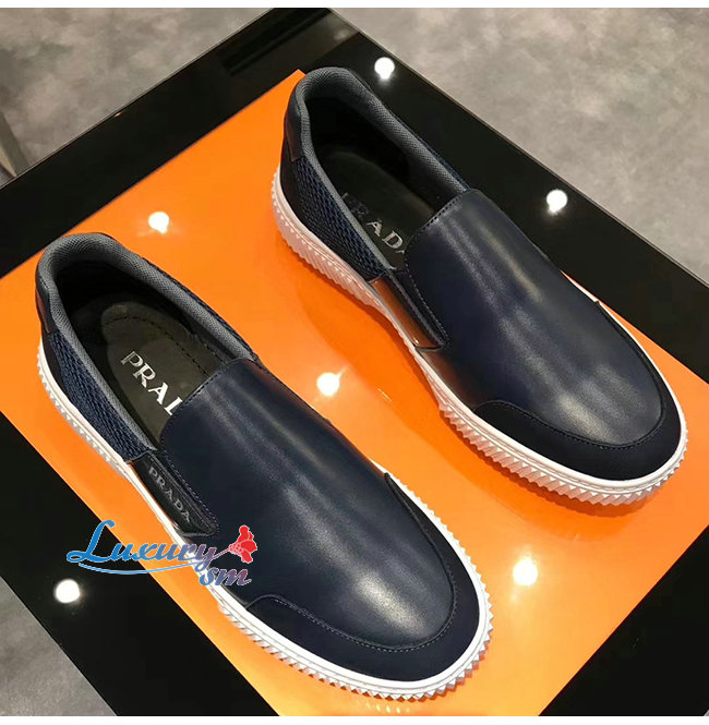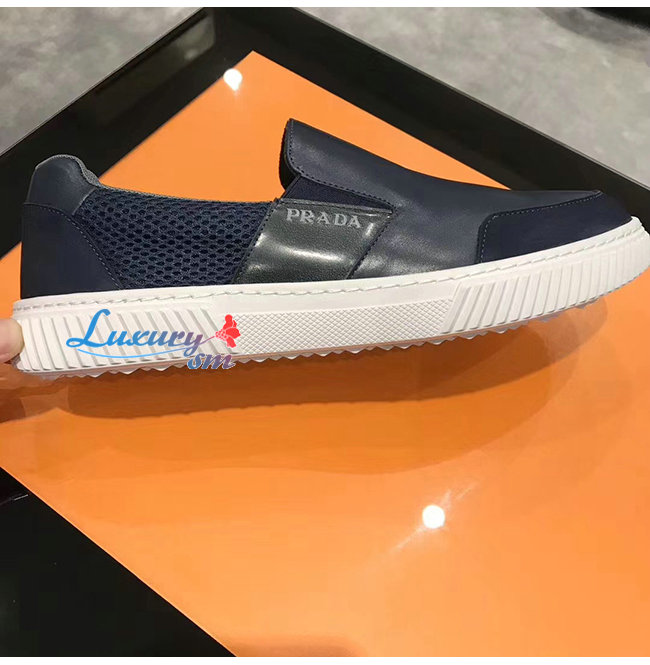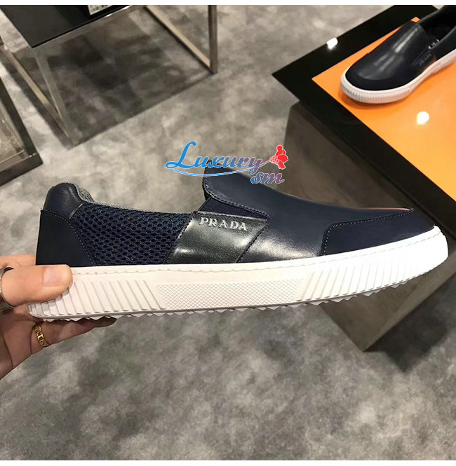 PRADA-4D3522 프라다 네이비 메시 송아지 가죽 슬립온 스니커즈