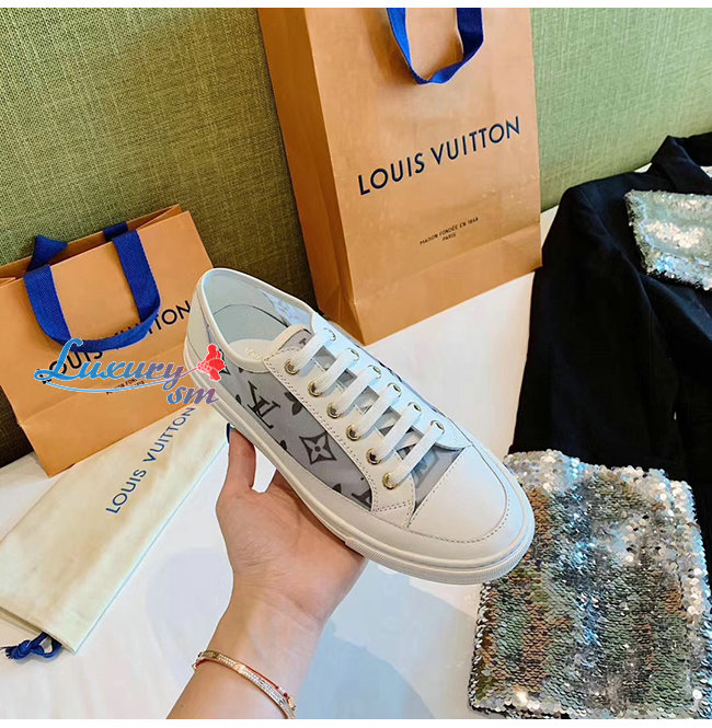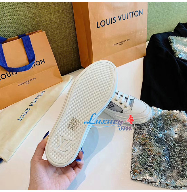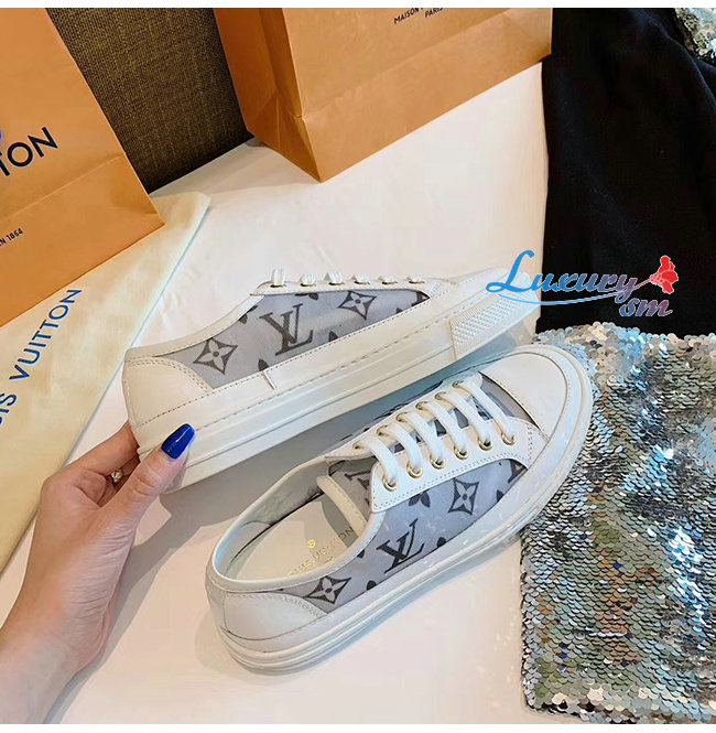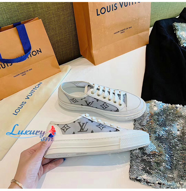 LOUIS VUITTON-1A87F2 루이비통 화이트/블랙 송아지 가죽 테그니컬 패브릭 스텔라 스니커즈
