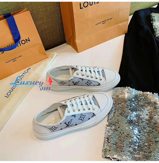 LOUIS VUITTON-1A87EE 루이비통 화이트/핑크 송아지 가죽 테그니컬 패브릭 스텔라 스니커즈