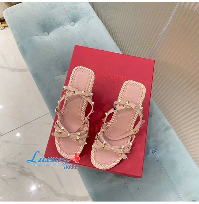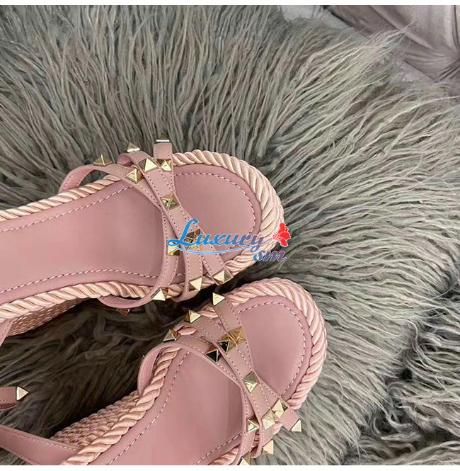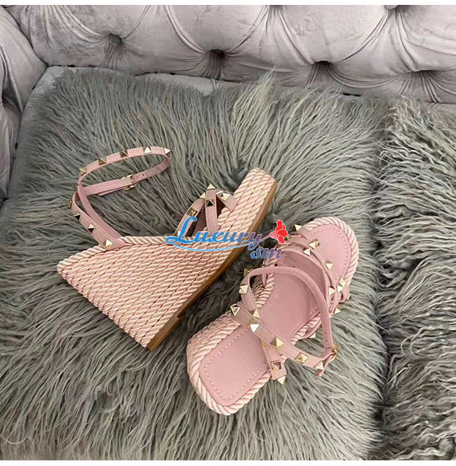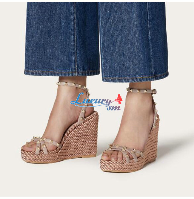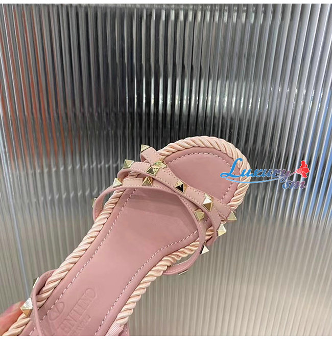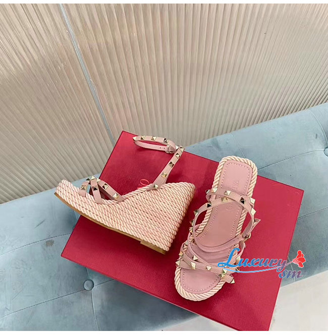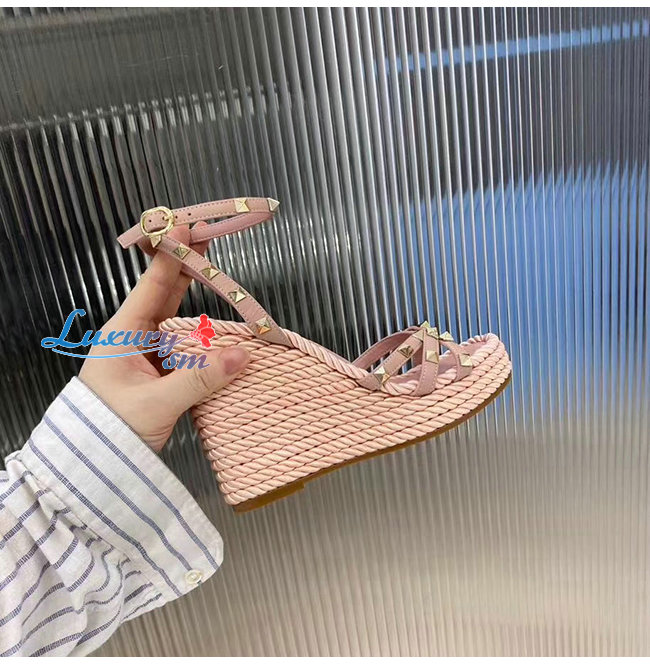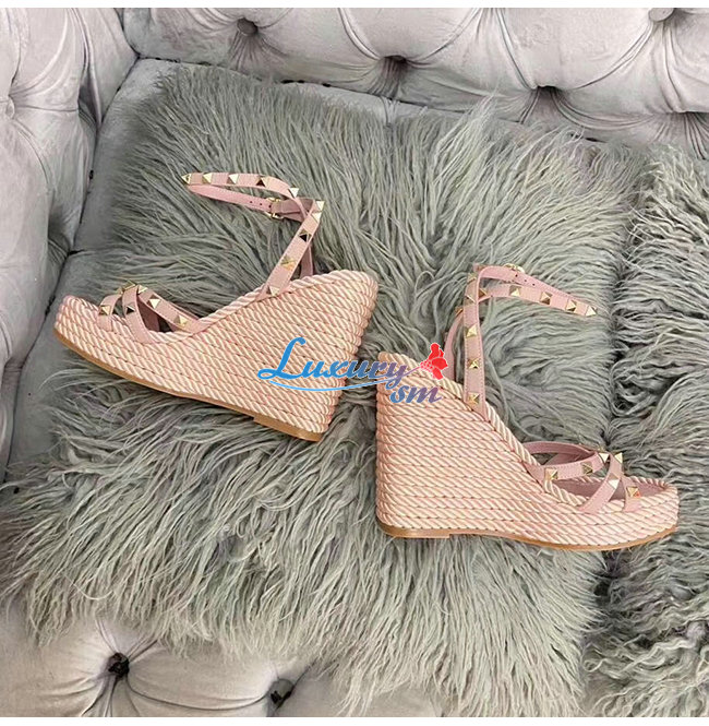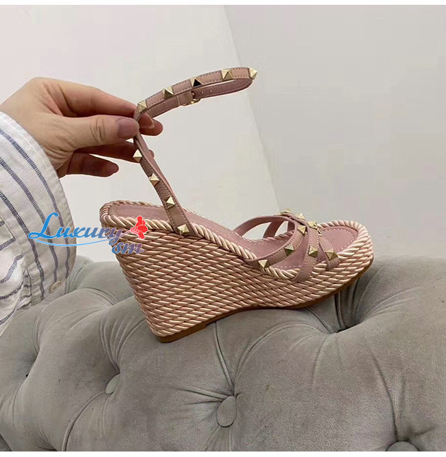 VALENTINO-SW2S0N72 발렌티노 푸드르 소가죽 락스터드 스트랩 웨지힐 샌들