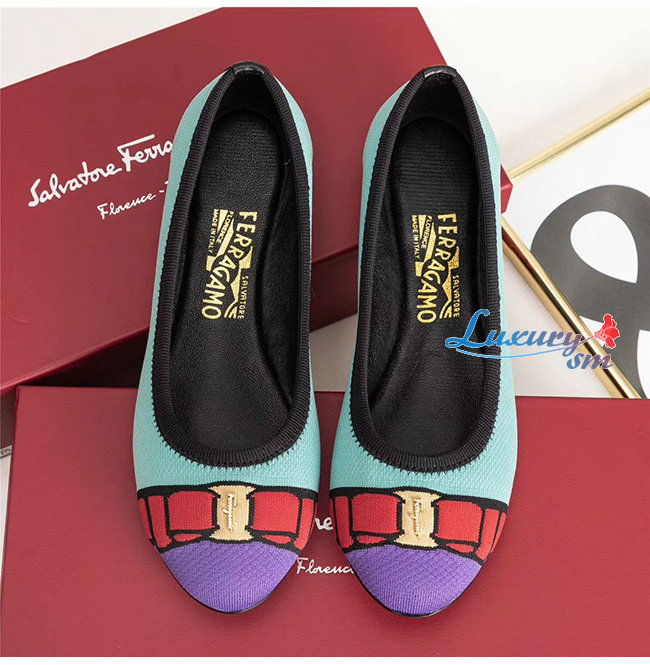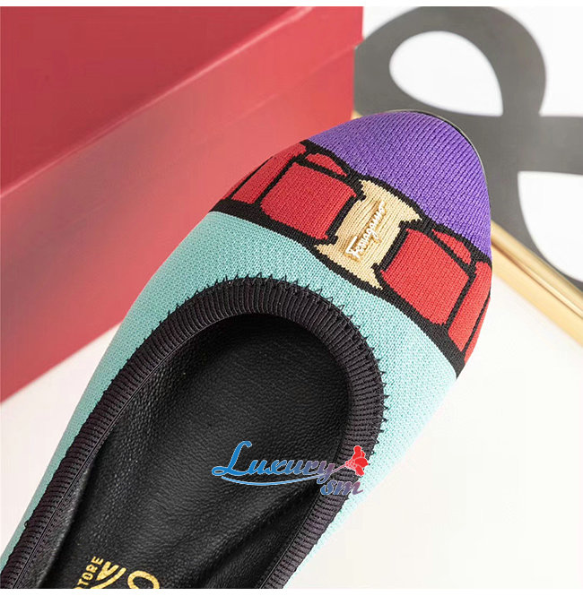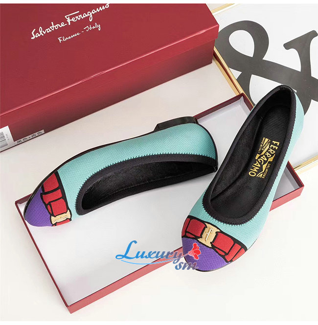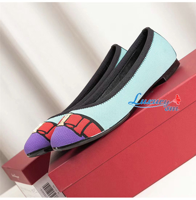 Ferragamo-01N989 페라가모 레드 코튼 바리나 발렛 플랫
