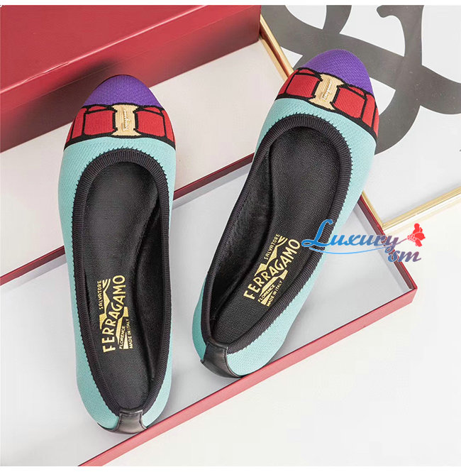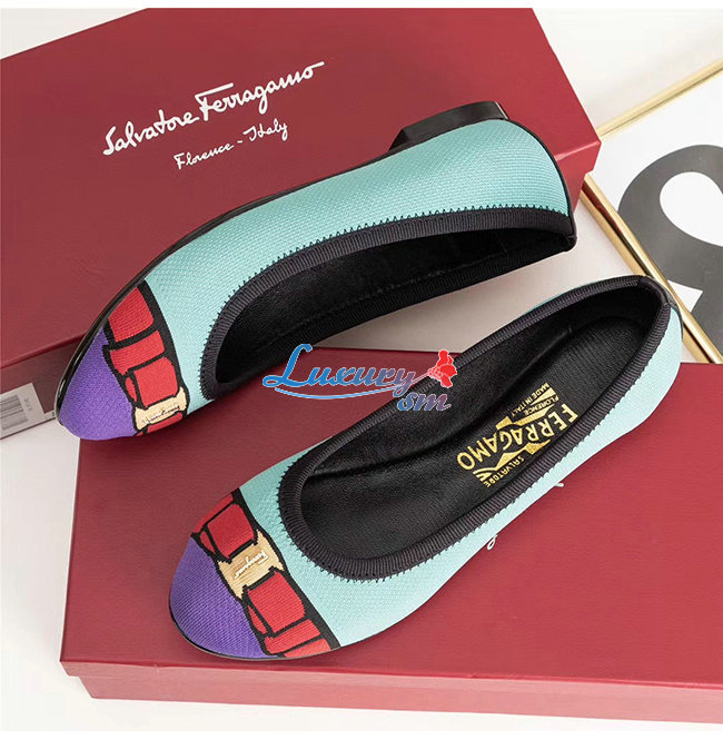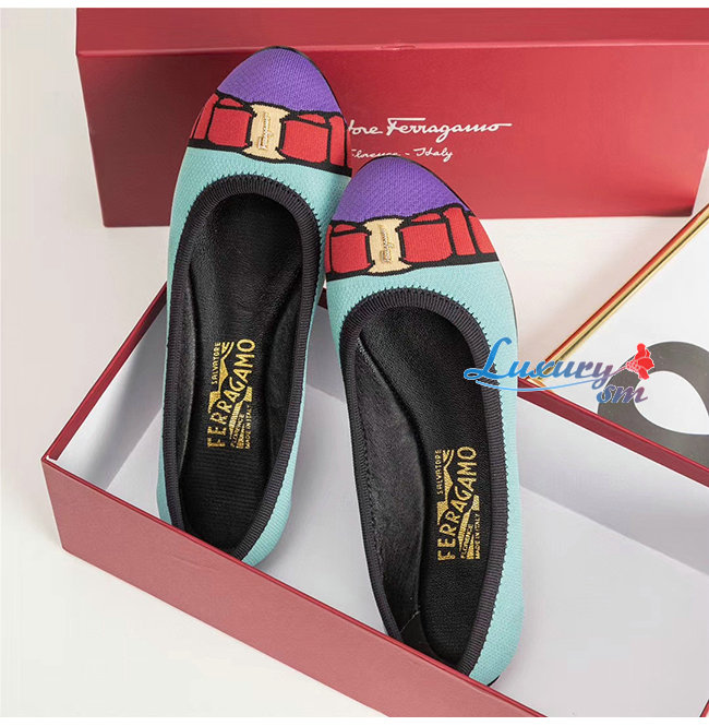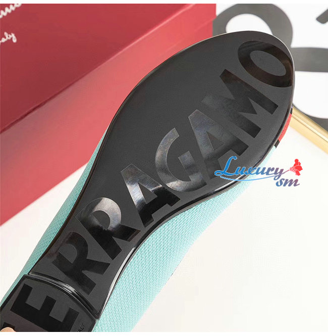 Ferragamo-01N989 페라가모 파스텔 블루 코튼 바리나 발렛 플랫