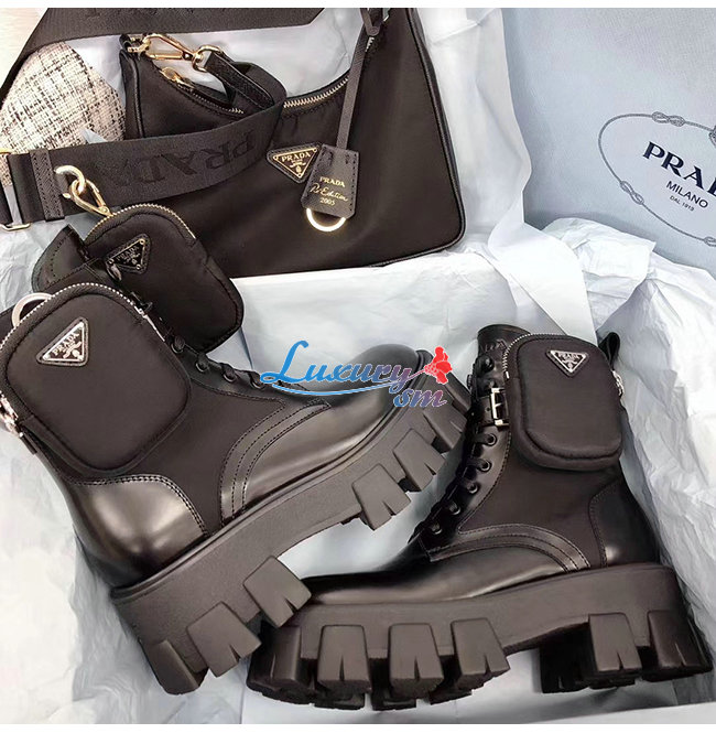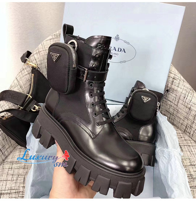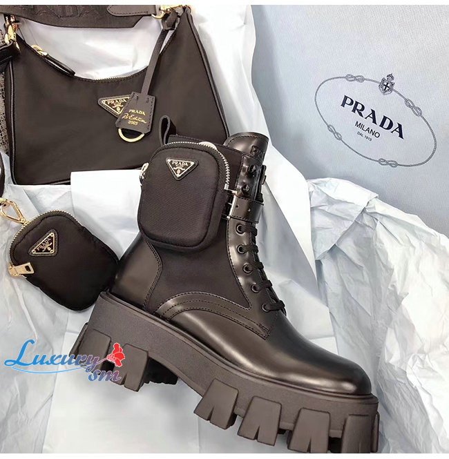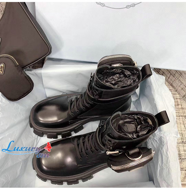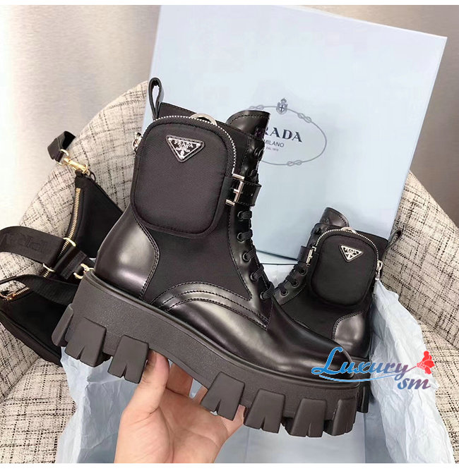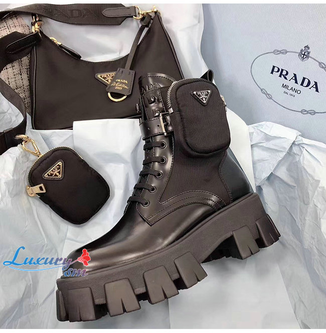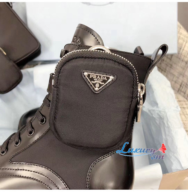 PRADA-1T255M 프라다 블랙 고트스킨 나일론 브러시드 로이스 부츠