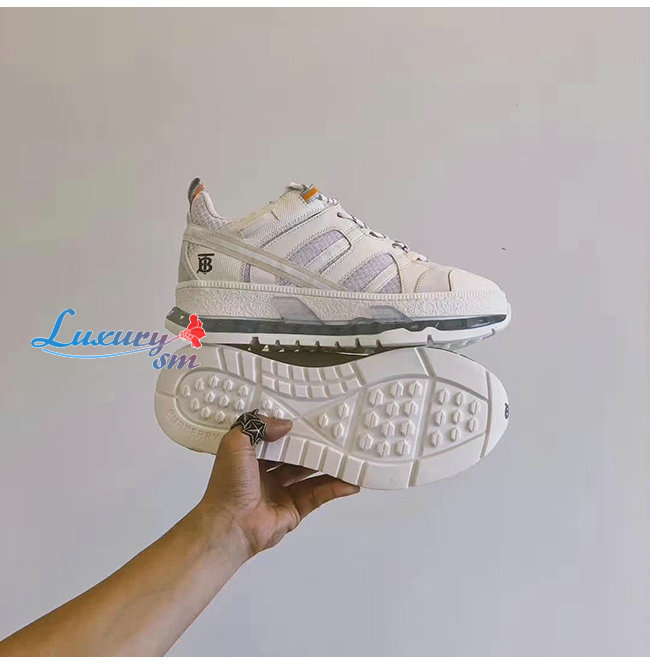밑창과 버버리 모노 그램 모티프 및 새로운 로고가