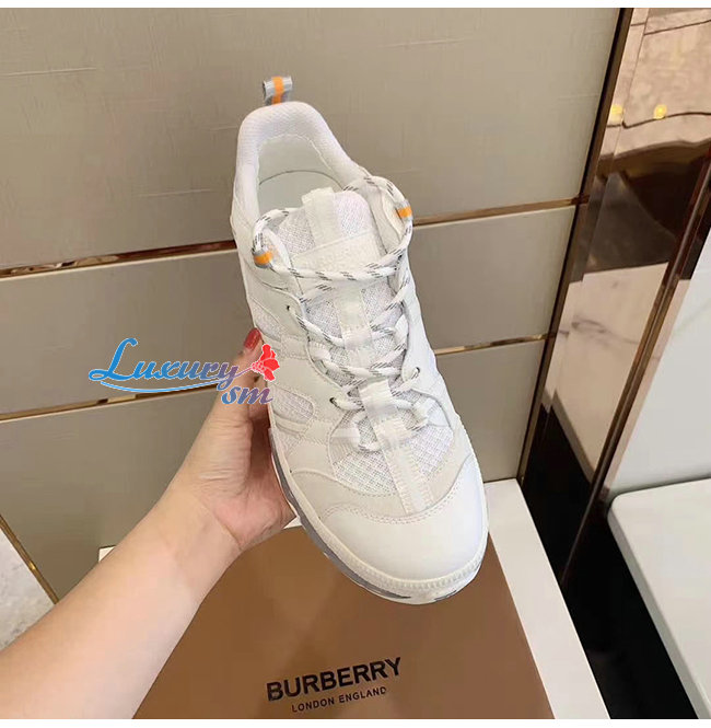 BURBERRY-80210481 버버리 화이트 나일론 레더 유니언 스니커즈