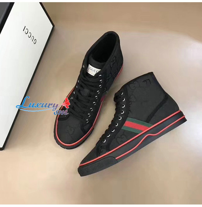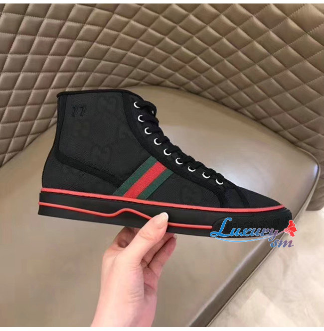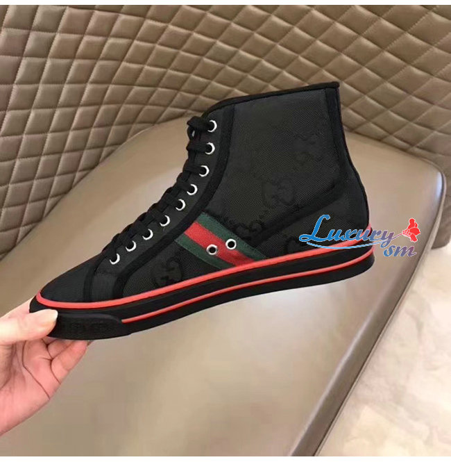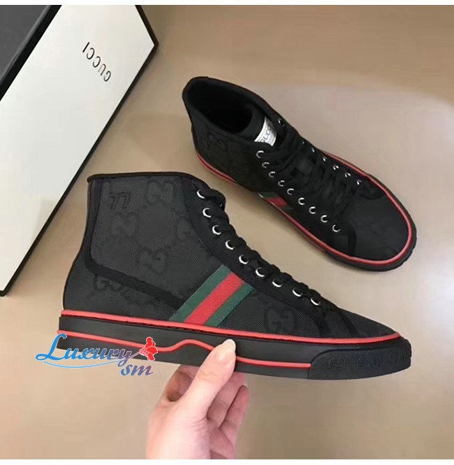 GUCCI-628717 1074 구찌 블랙 GG 나일론 구찌 오프 더 그리드 하이탑 스니커즈