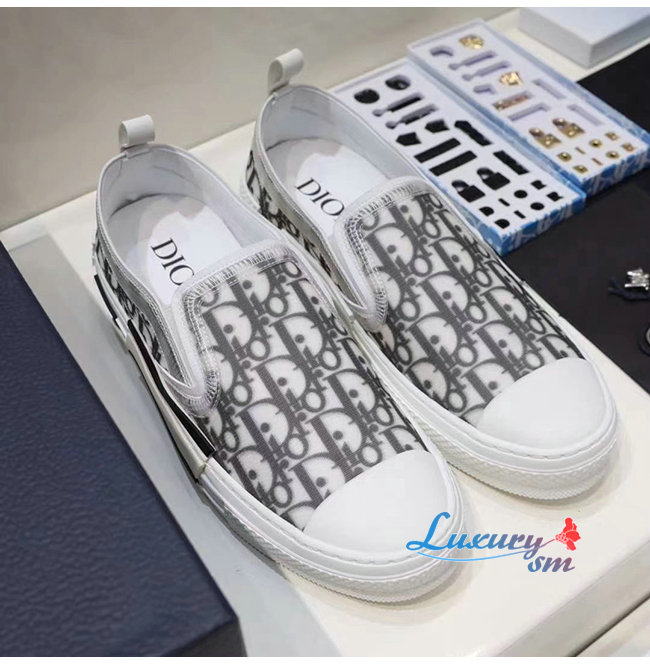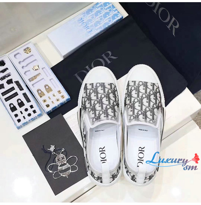 DIOR-3SN262 디올 블랙/화이트 Dior Oblique 캔버스 B23 슬립온 스니커즈 남여공용