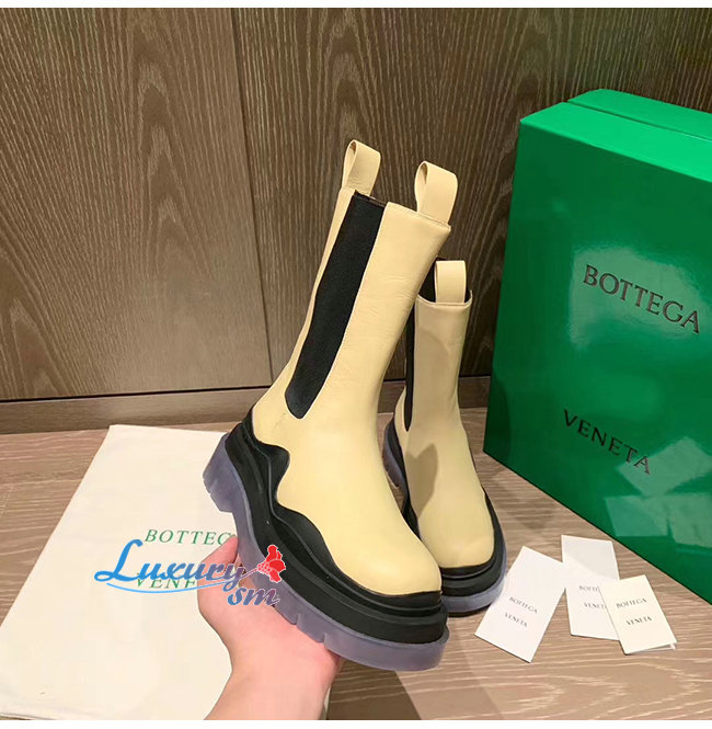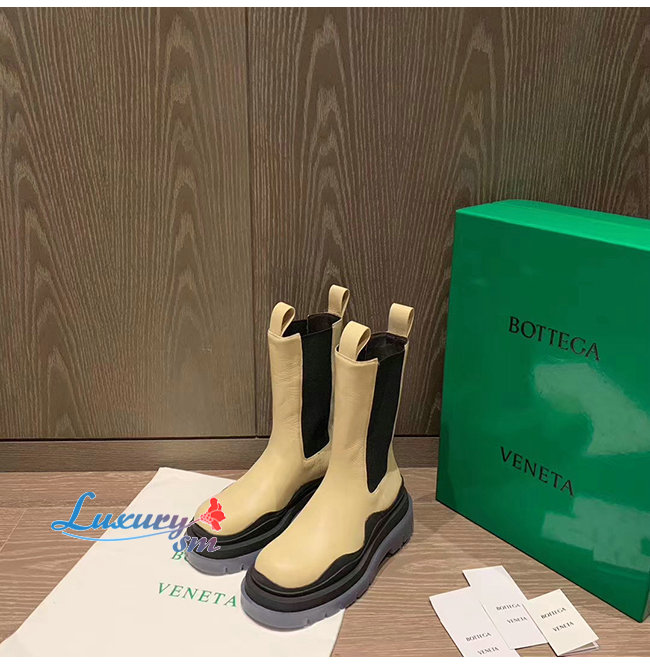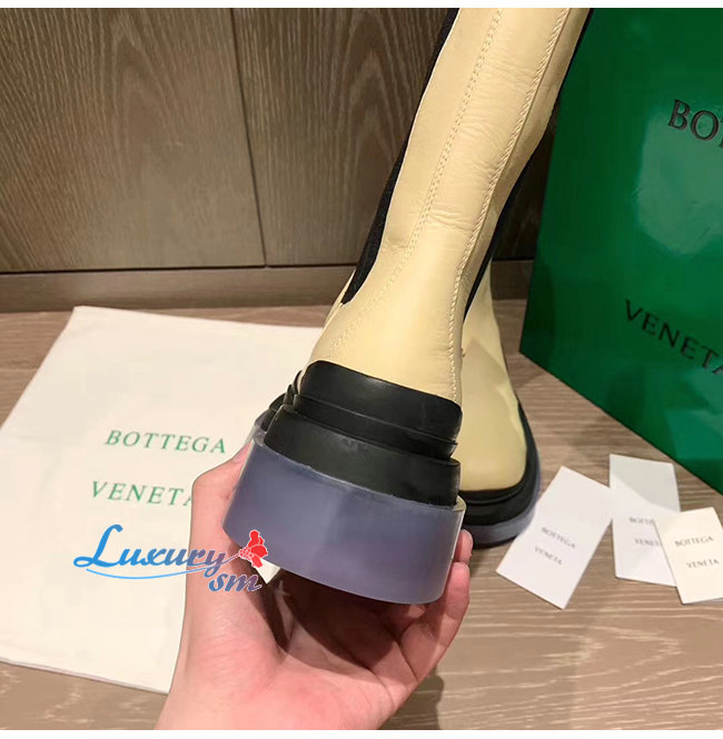 BOTTEGA VENETA-630297 보테가 베네타 버터/블랙 송아지 가죽 BV 타이어 부츠 여성용