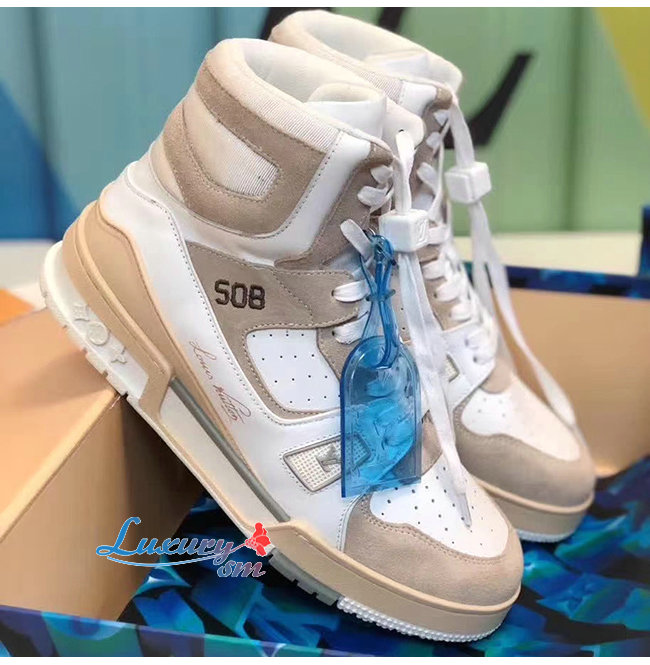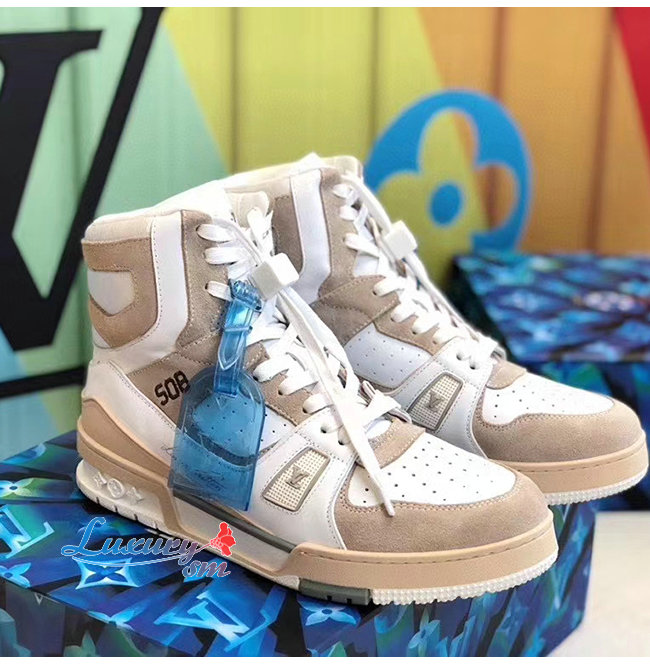 LOUIS VUITTON-1A7P25 루이비통 화이트 송아지 가죽 LV 트레이너 스니커 부츠