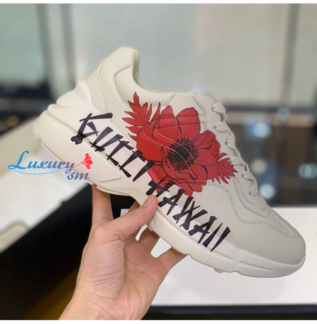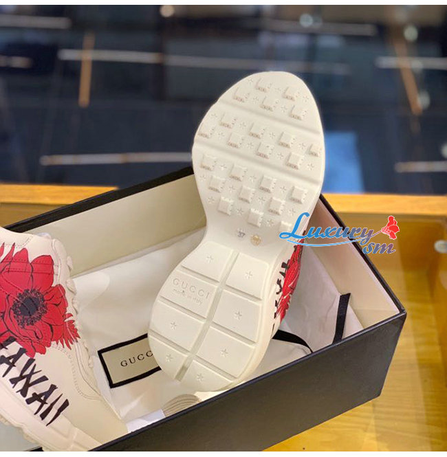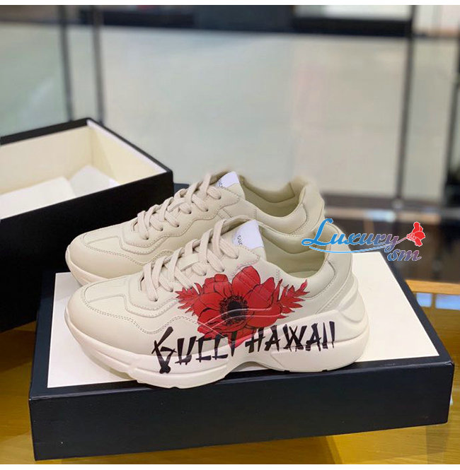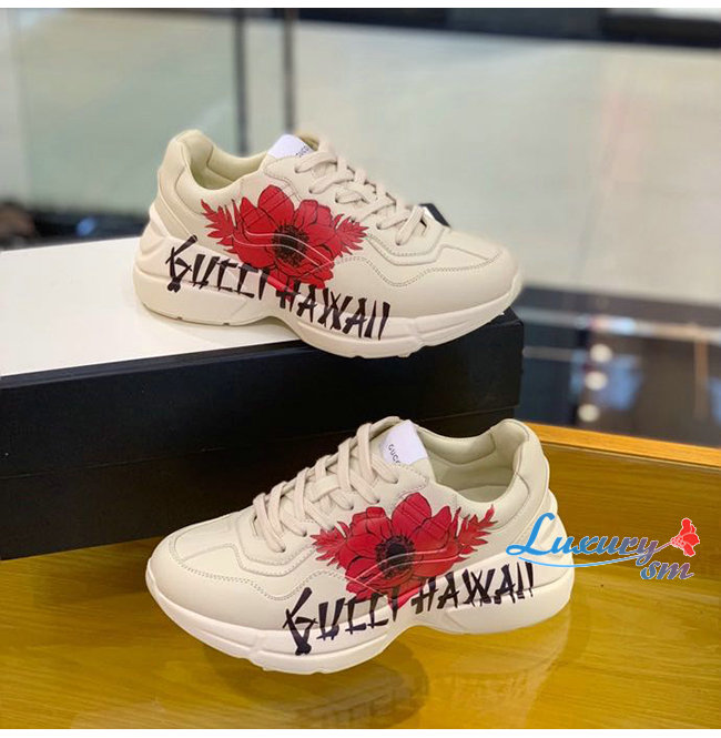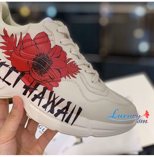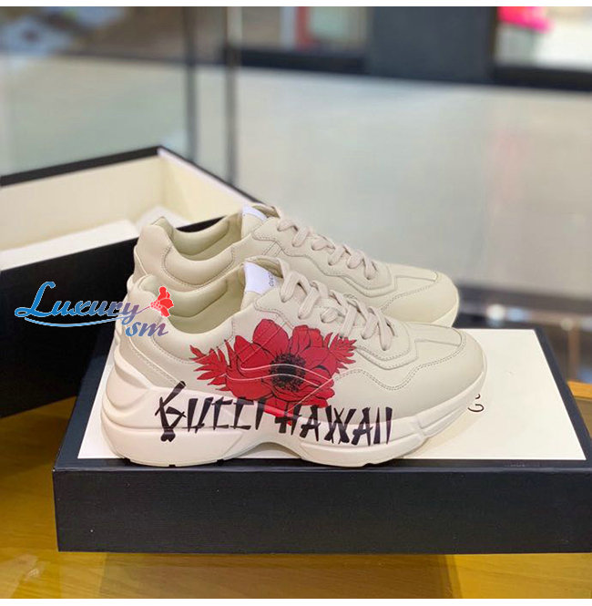 GUCCI-631708 9522 구찌 롸이톤 아이보리 가죽 Gucci Hawaii 프린트 스니커즈 남여공용