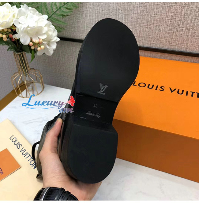 LOUIS VUITTON-1A7WI2 루이비통 블랙 송아지 가죽 모노그램 디테일 메트로폴리스 플랫 레인저 가격 : 300,000원