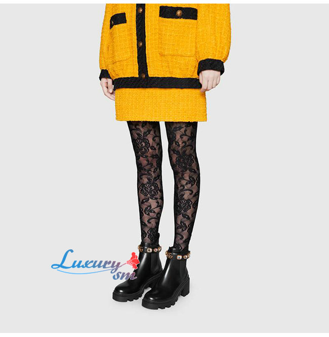 GUCCI-557735 1000 구찌 블랙 엠브로이드 가죽 크리스털 장식 앵클 부츠 가격 : 300,000원