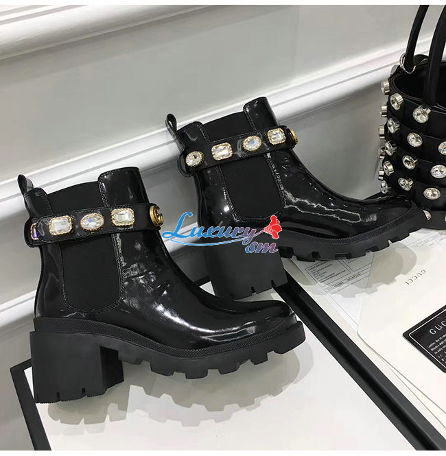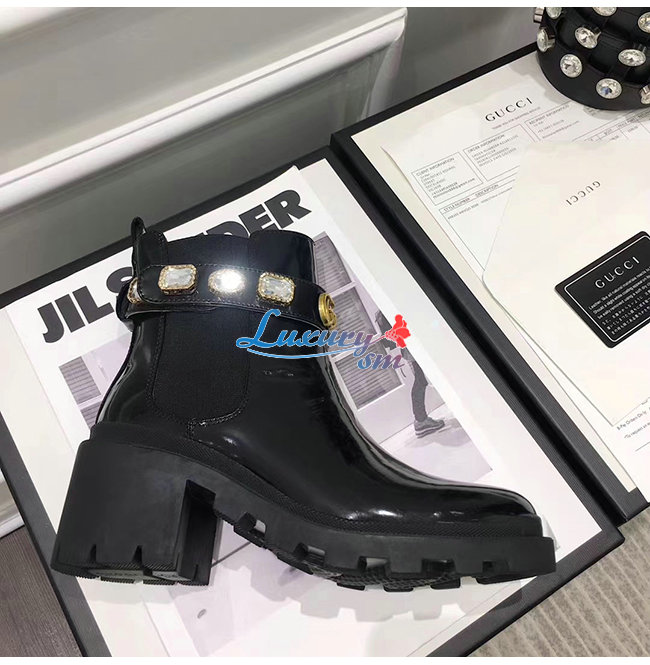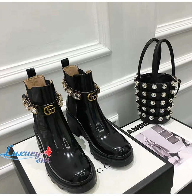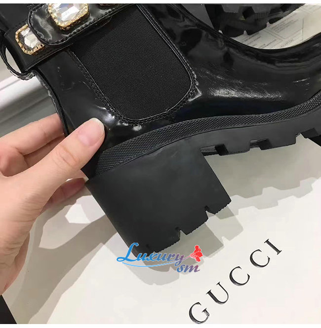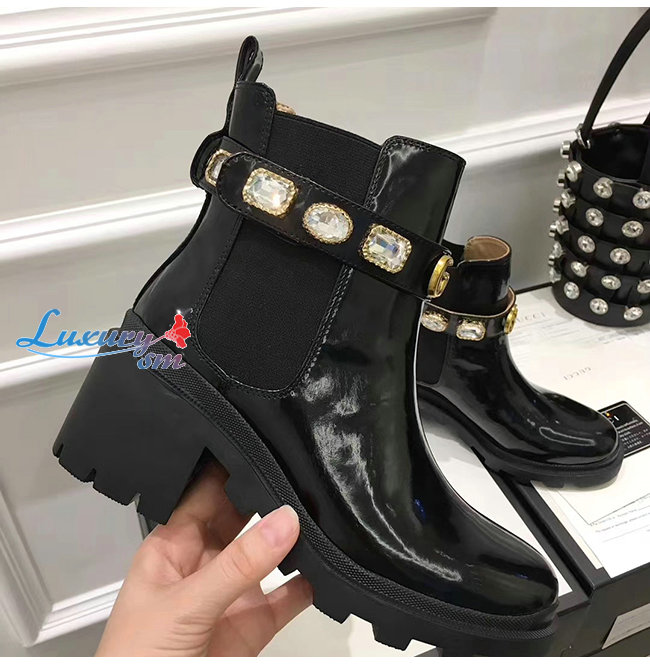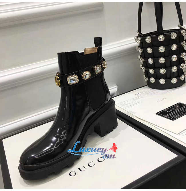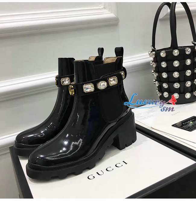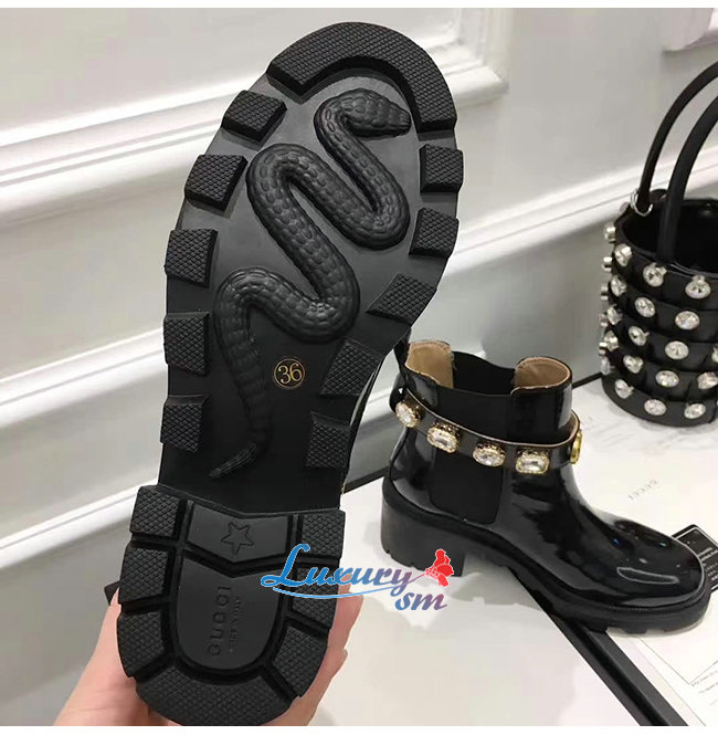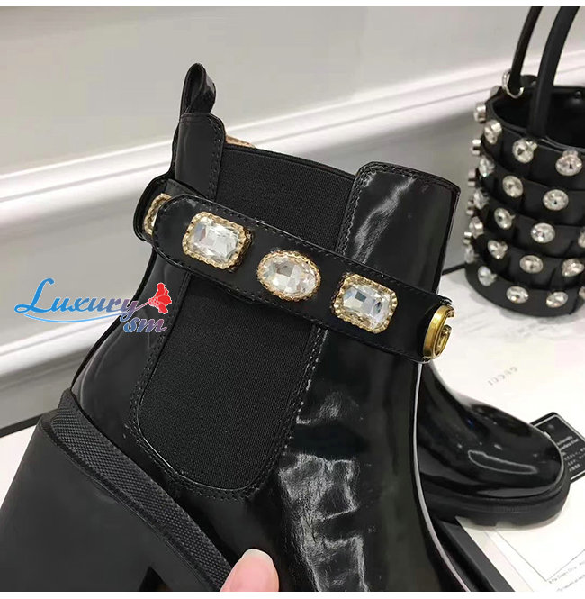 GUCCI-550036 1000 구찌 블랙 가죽 크리스털 장식 앵클 부츠