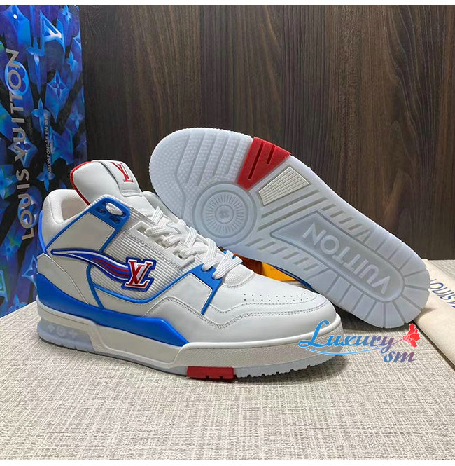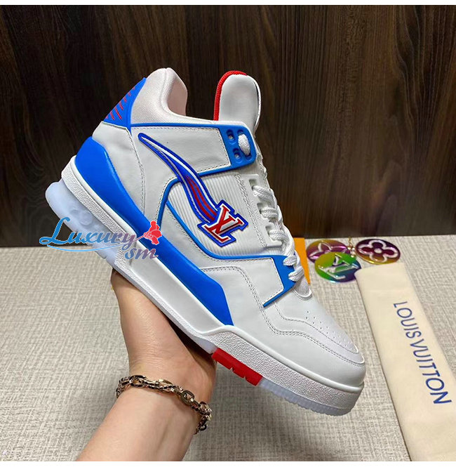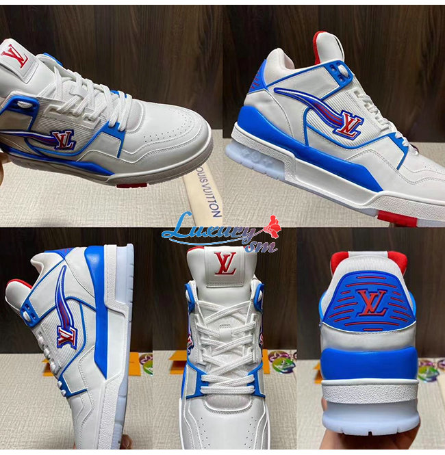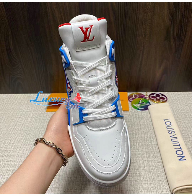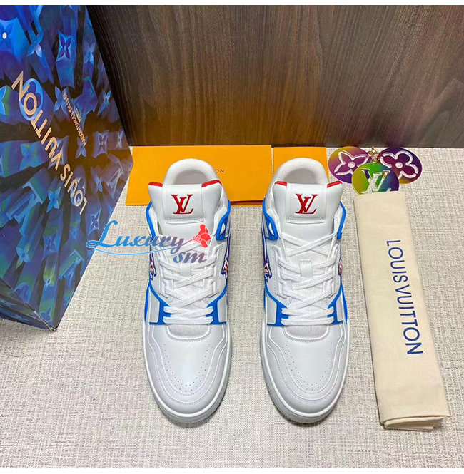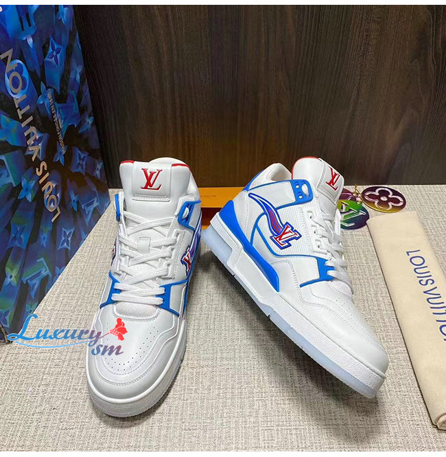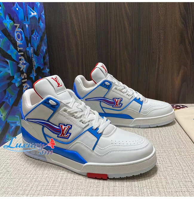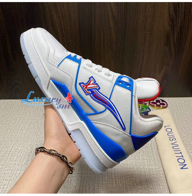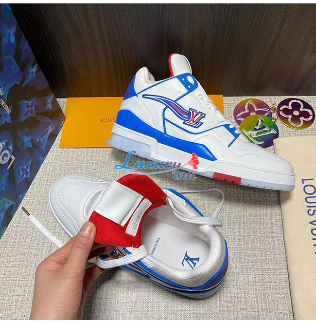 LOUIS VUITTON-1A8AGO 루이비통 블루/화이트 송아지 가죽 LV 트레이너 스니커즈 가격 : 320,000원