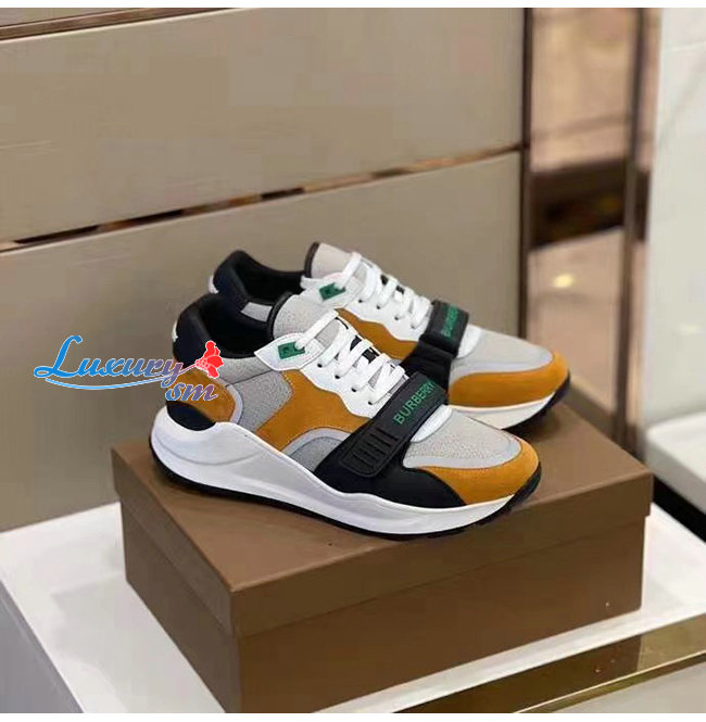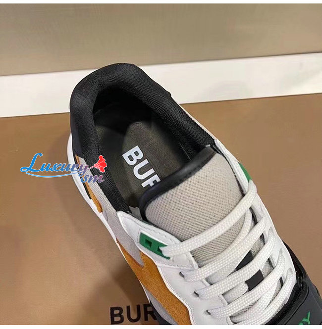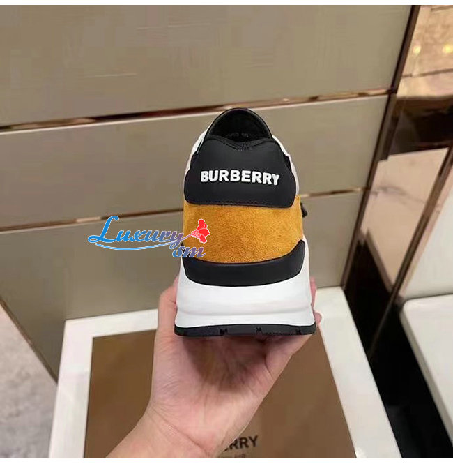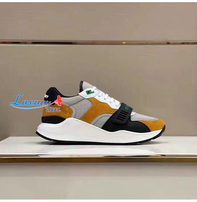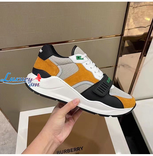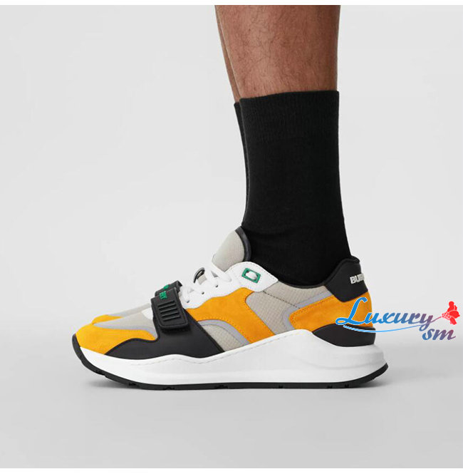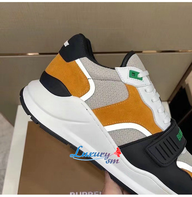BURBERRY-80372561 버버리 브라이트 오렌지/블랙 스웨이드 레더 메시 스니커즈