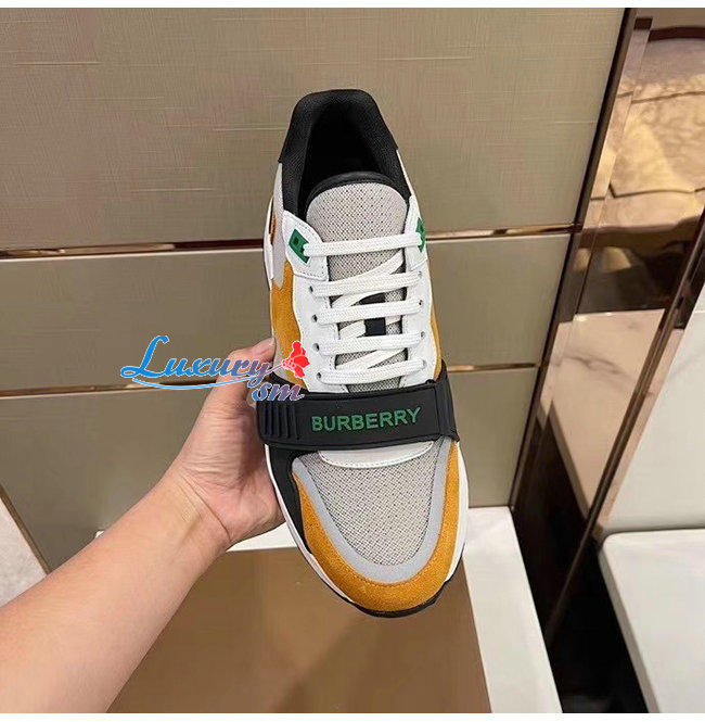 BURBERRY-80372551 버버리 베이지 스웨이드 레더 메시 스니커즈