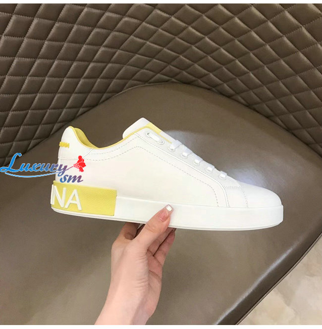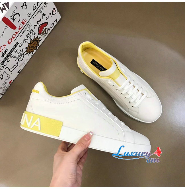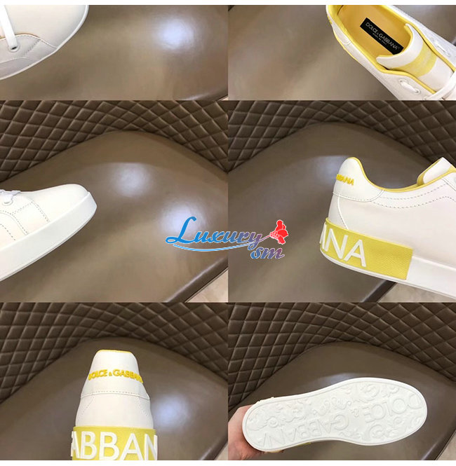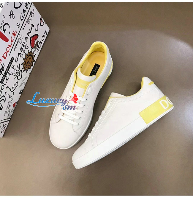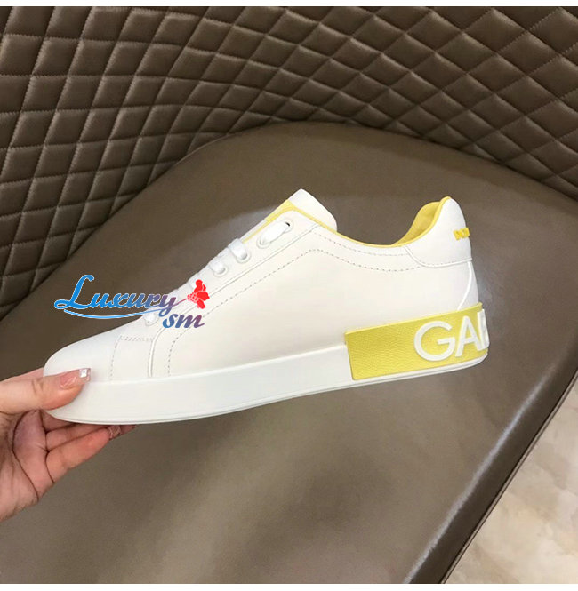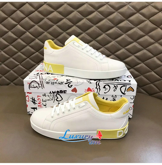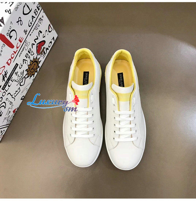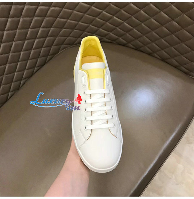 Dolce and Gabbana-돌체 앤 가바나 화이트/옐로우 카프스킨 라메 디테일 포르토피노 스니커즈 남성용