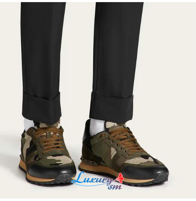 VALENTINO-WY2S0723 발렌티노 카키 메쉬 패브릭 카무플라주 락러너 스니커즈 남성용