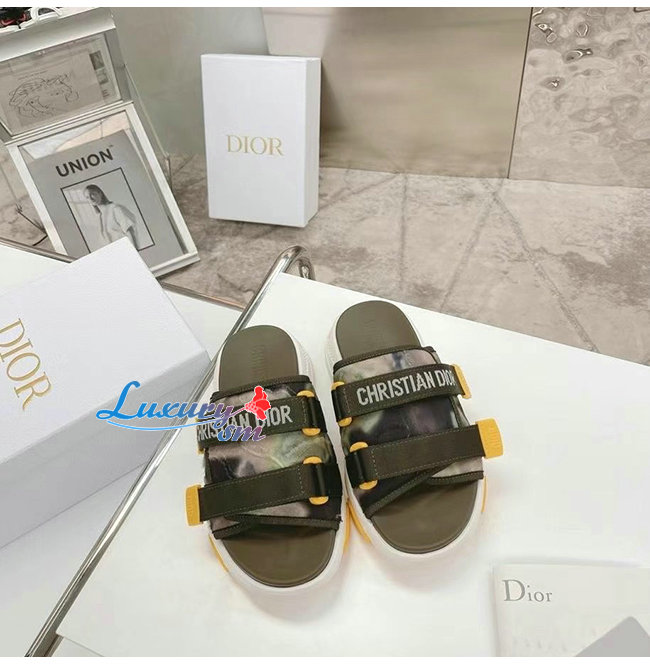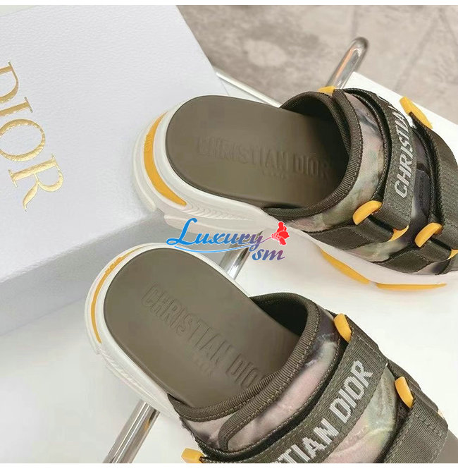 DIOR-KCQ351 디올 카키 Tie & Dior 테크니컬 패브릭 D-WANDER 뮬 여성용