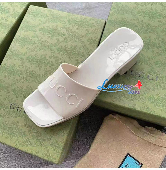 GUCCI-624730 9022 구찌 화이트 러버 슬라이드 샌들