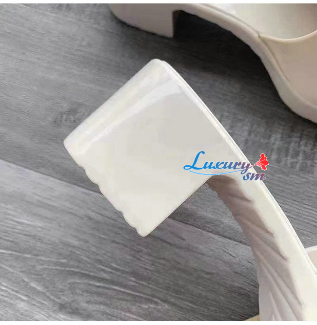 감성을 더한 화이트 러버 소재의 슬라이드 샌들.